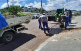 O mutirão teve início às 7h30, com a concentração das equipes no Centro de Convivência dos Idosos