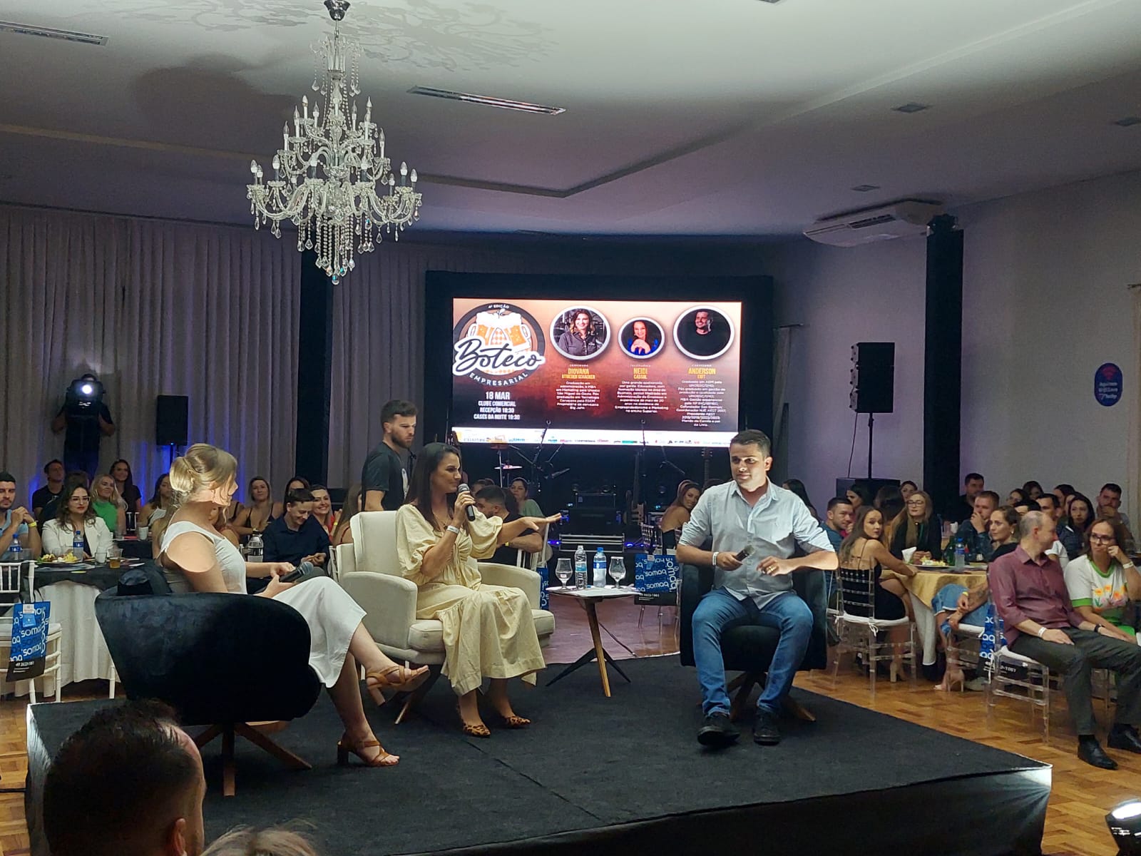 Foi realizado no último sábado (18), a 4ª edição do Boteco Empresarial do Núcleo do Jovem Empreendedor, da Acismo, no Clube Comercial, em São Miguel do Oeste. O evento reuniu mais de 350 pessoas para prestigiar a roda de conversa “Minha empresa está crescendo. E agora?”, abordada pelos palestrantes Diovana Schacker, proprietária da Big John Cervejaria e Anderson Eidt, cofundador da San Germain e mediada por Neidi Cassol, especialista em Marketing e Empreendedorismo.