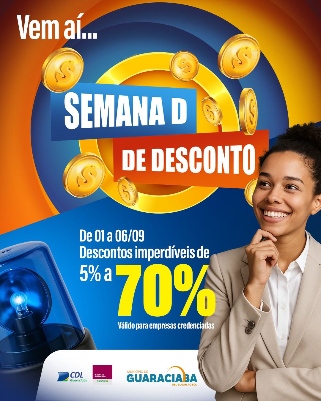 A Administração Municipal de Guaraciaba através da Secretaria de Indústria e Comércio estarão promovendo um Projeto denominado Semana D de Descontos. A informação é da Secretária de Indústria e Comércio Cinthia Borsatto. O credenciamento das empresas interessadas encerrou nesta segunda-feira (11), e são 70 empresas participantes.
