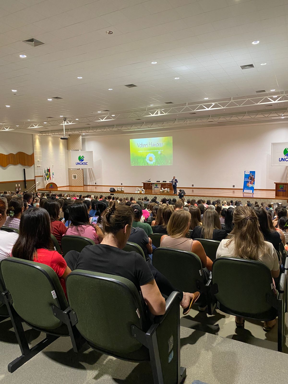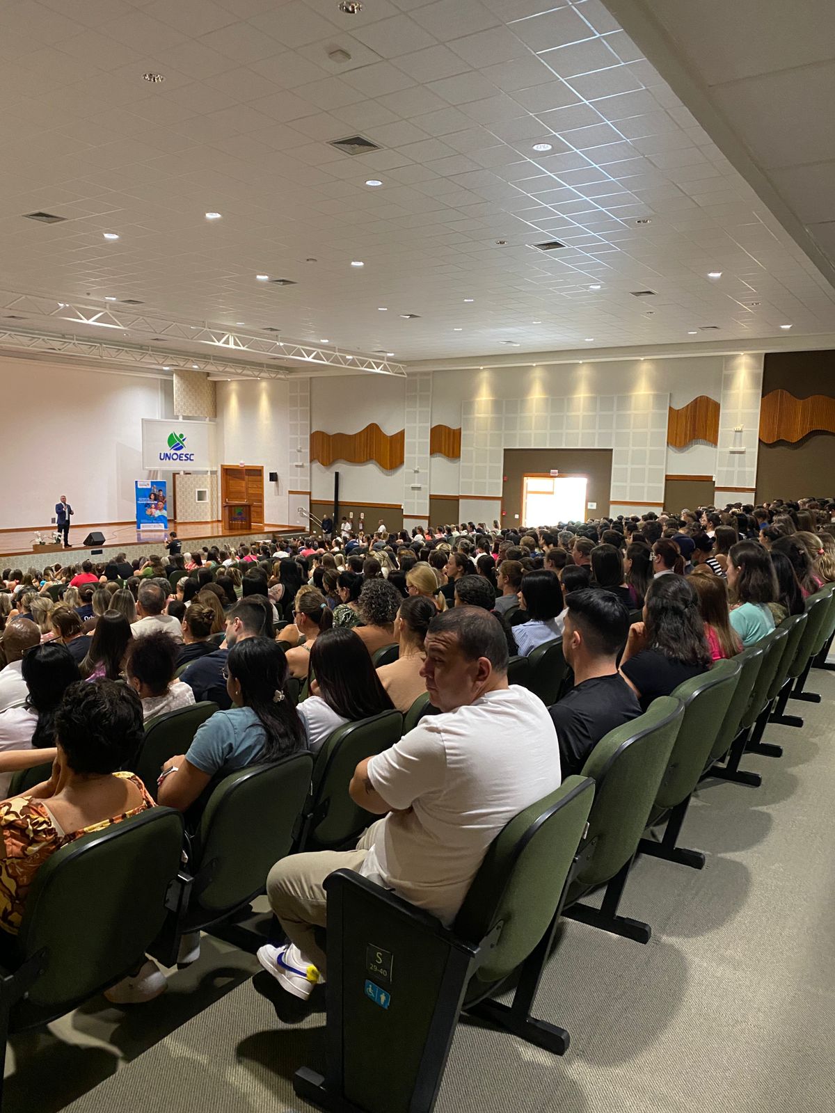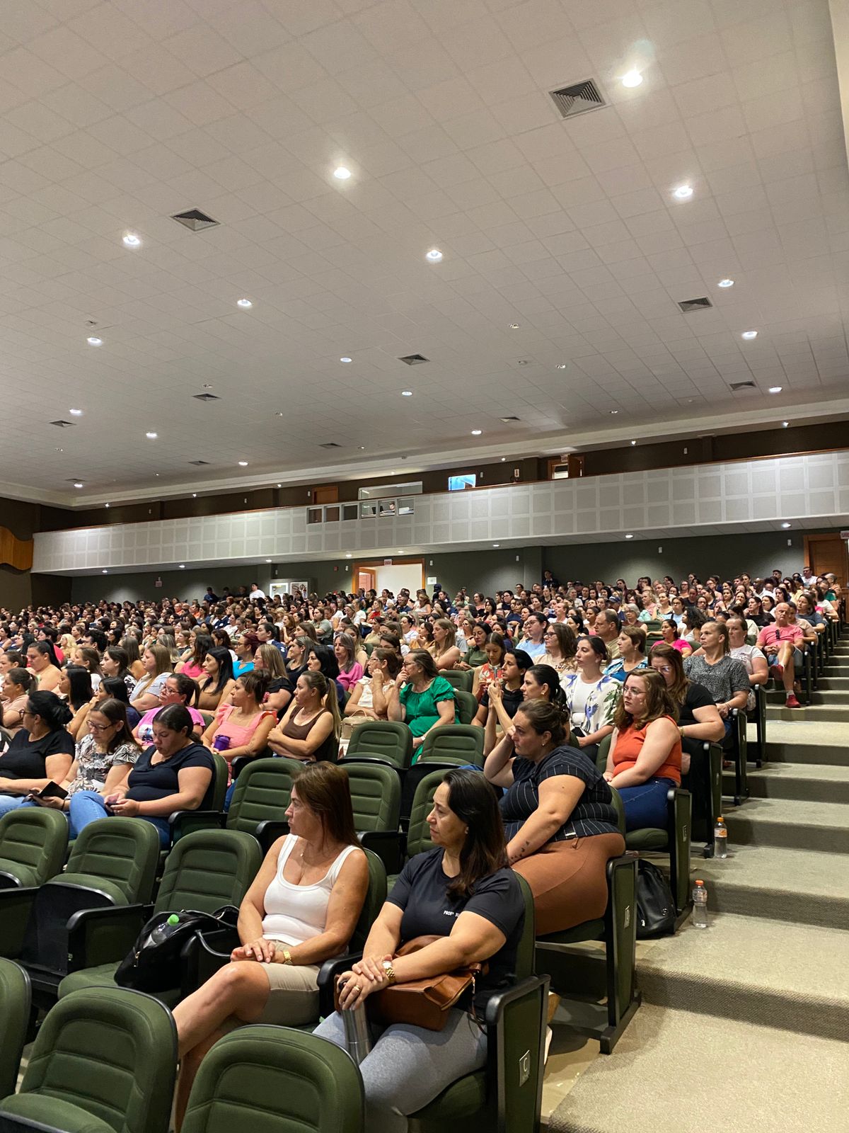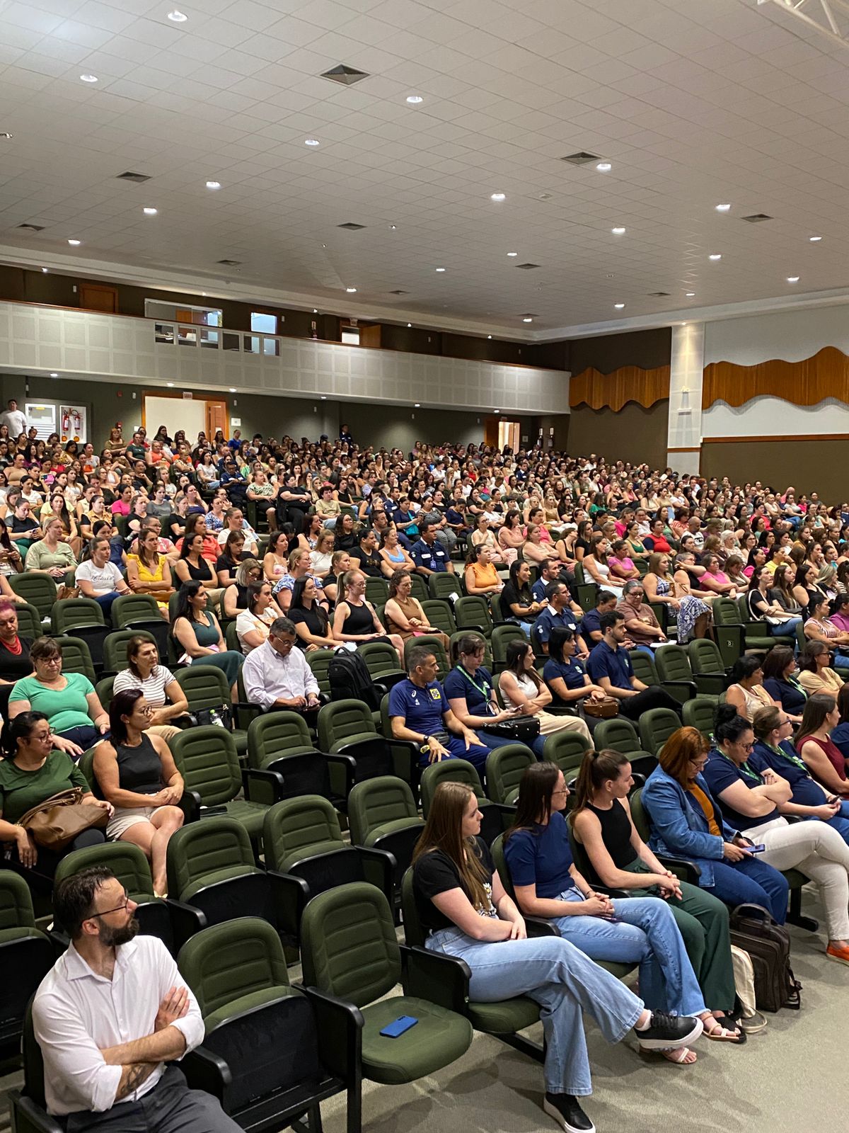 Última atualização: 2026/02/02 1:59:50O ano letivo de 2026 da rede municipal de ensino de São Miguel do Oeste foi oficialmente aberto nesta segunda-feira, em um evento realizado no Centro de Eventos da Unoesc, que reuniu cerca de 800 profissionais da educação e contou com auditório completamente lotado, marcando o início das atividades com uma palestra voltada aos docentes e a apresentação das principais ações planejadas para o novo ano escolar.