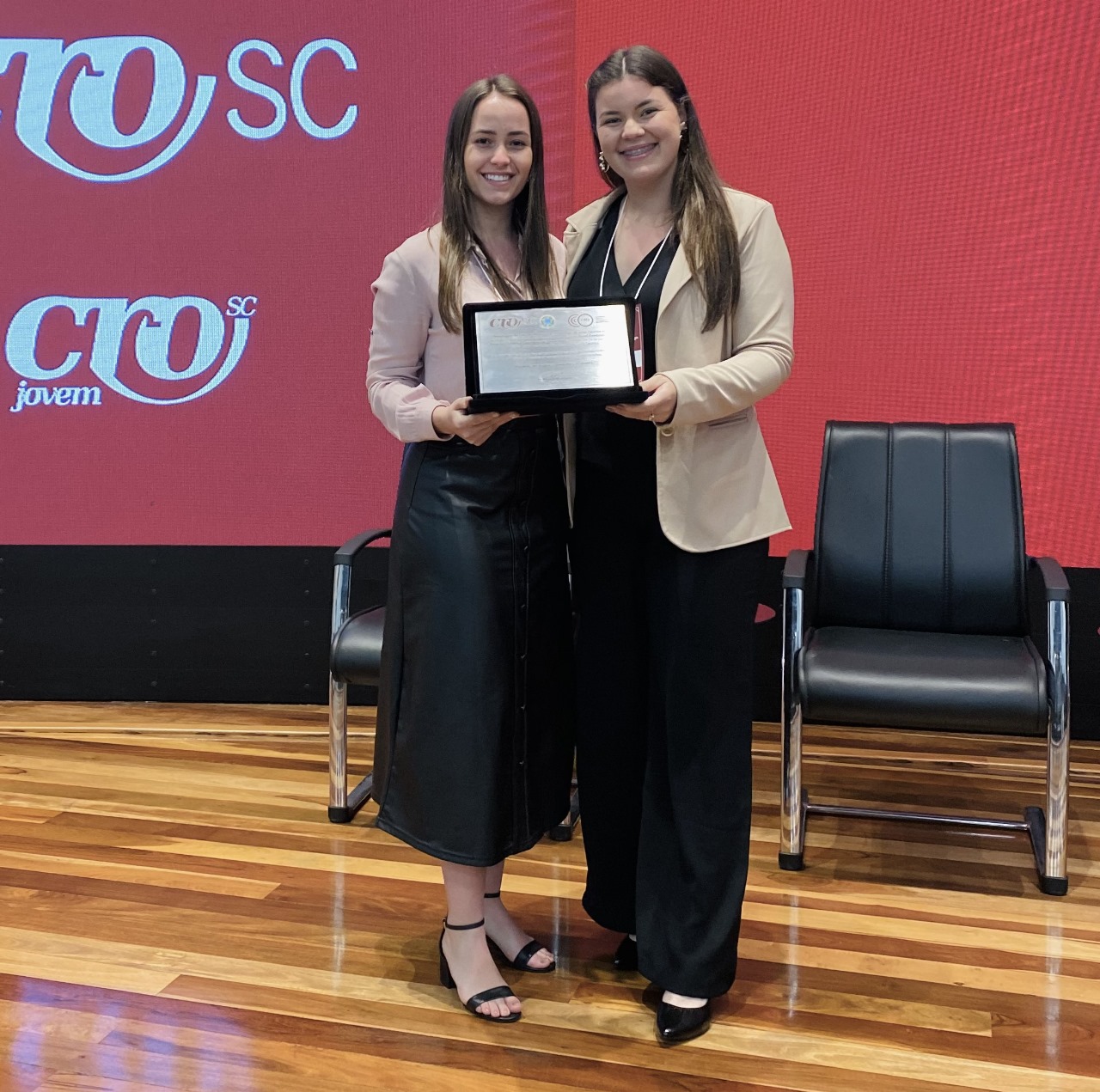 Durante a apresentação dos trabalhos, duas alunas da UCEFF Itapiranga tiveram sua pesquisa, intitulada de “Perda Dentária Associada ao Uso de Serviços Odontológicos Preventivos em Adolescentes Brasileiros: uma Análise da Pesquisa Nacional de Saúde”, premiada em terceiro lugar na modalidade “Painel Eletrônico”.