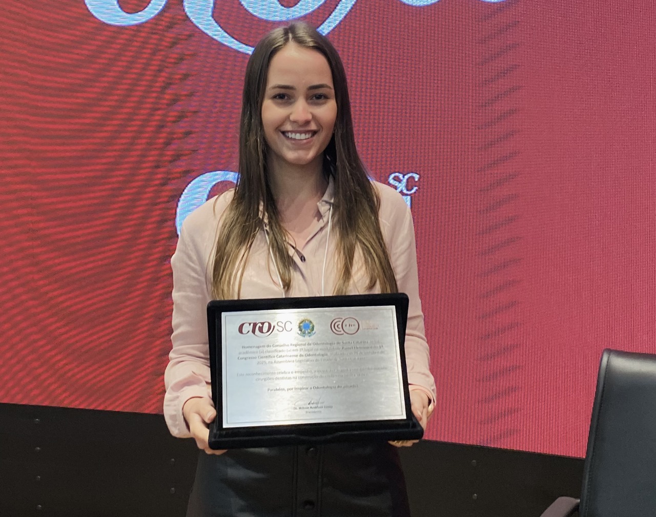 “Ter a oportunidade de compartilhar conhecimento e trocar ideias com profissionais e estudantes da área proporcionou um importante aprendizado. Além disso, foi uma honra e uma motivação para o meu crescimento acadêmico ser classificada em terceiro lugar. Isso reforçou o compromisso em aprimorar conhecimentos, desenvolver pesquisas e contribuir para o avanço da Odontologia com ética e responsabilidade com a saúde bucal da população.”