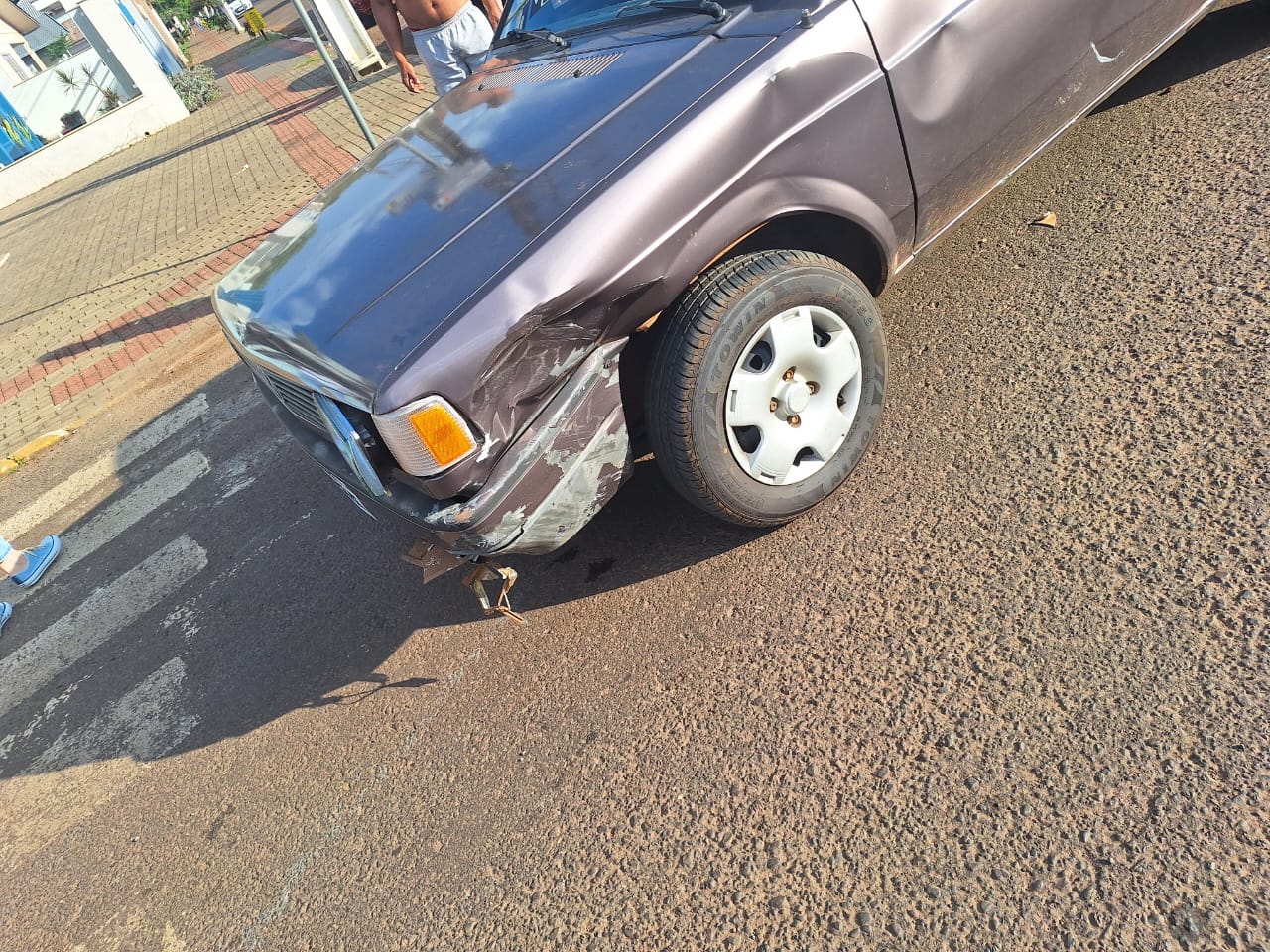 A ocorrência, registrada na Rua João Busato, envolveu a colisão entre um automóvel Volkswagen Gol e uma motocicleta Honda Biz