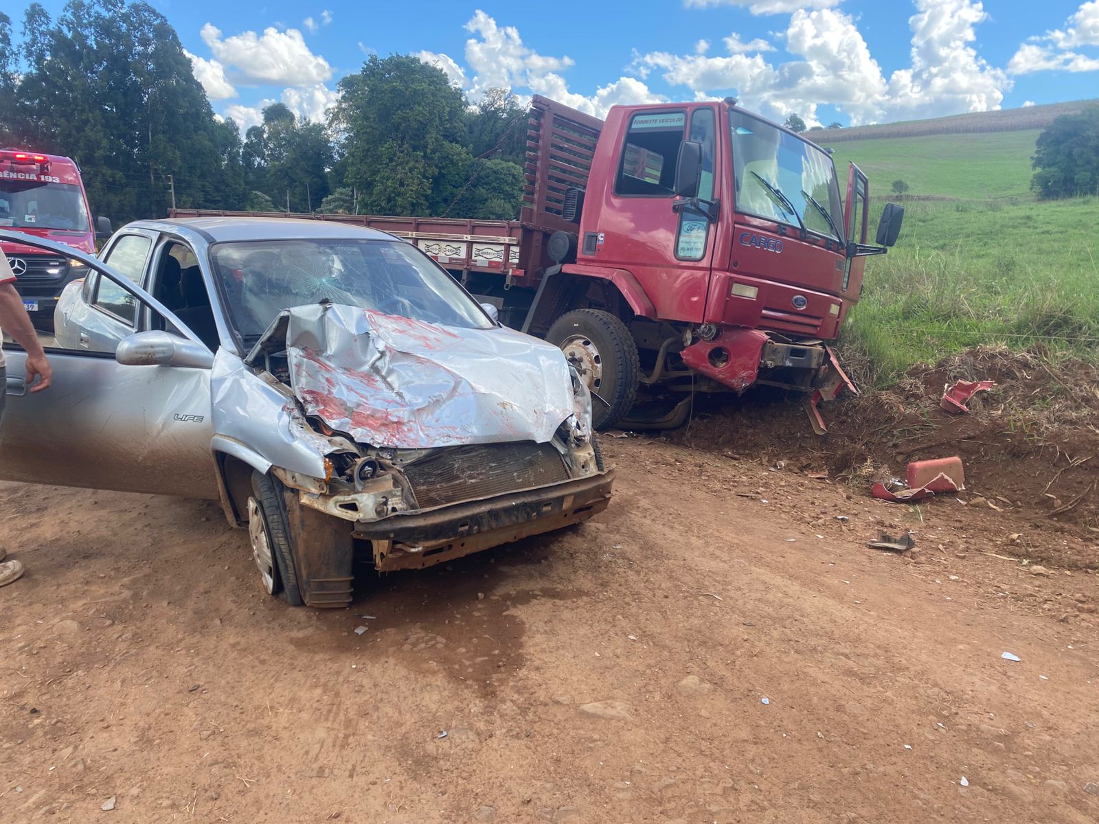 Última atualização: 2025/04/17 4:20:31O Corpo de Bombeiros de São José do Cedro atendeu na tarde desta quinta-feira (17) uma colisão frontal envolvendo um carro e um caminhão na Linha Sagrada Família, no interior do município de Princesa. O acidente foi registrado por volta das 13h50 e mobilizou a equipe da viatura ASU-518.