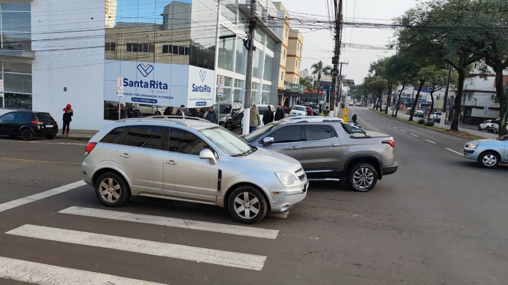 Última atualização: 2025/07/09 9:54:40Na manhã desta quarta-feira, 09 de julho, por volta das 9h, um acidente de trânsito foi registrado na Avenida Fernando Machado, esquina com a Rua Paulo Marques, no centro de Chapecó, Oeste de Santa Catarina. A ocorrência envolveu um Honda CR-V, uma Fiat Toro e uma Chevrolet Captiva.