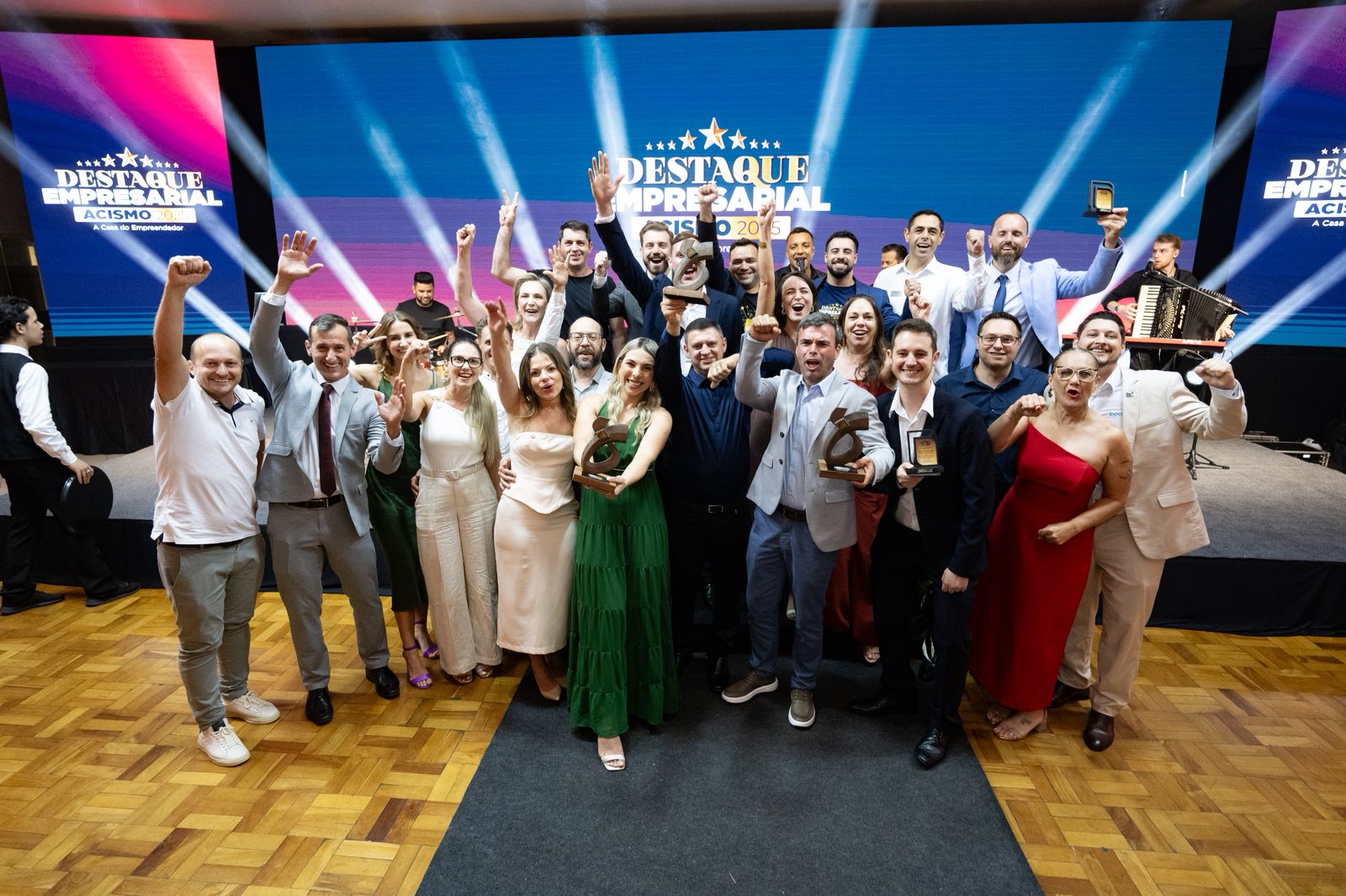 Última atualização: 2025/12/12 2:28:07A noite desta quinta-feira (11) foi de celebração e reconhecimento no Clube Comercial de São Miguel do Oeste com a realização da cerimônia do Destaque Empresarial 2025, promovida pela ACISMO – Associação Empresarial de São Miguel do Oeste. O evento reuniu convidados entre empresários, familiares, imprensa e lideranças regionais, consolidando-se como um dos mais aguardados do calendário empresarial do Extremo Oeste.