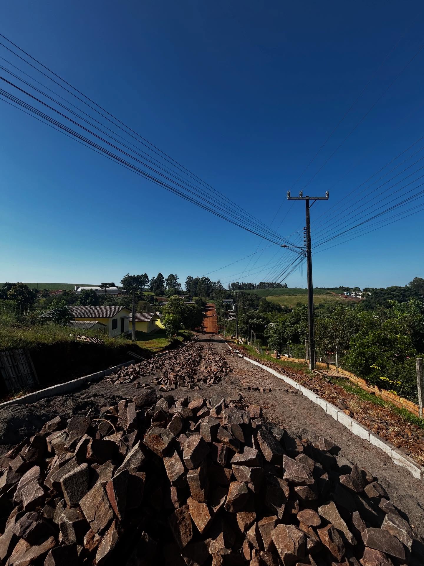 As obras de asfaltamento, que contam com um investimento de aproximadamente R$ 2,8 milhões, seguem em ritmo acelerado. A empresa responsável realiza as adequações necessárias nas vias, com a preparação da base em pedra britada, etapa fundamental que antecede a aplicação da camada asfáltica, garantindo maior durabilidade e qualidade ao serviço.