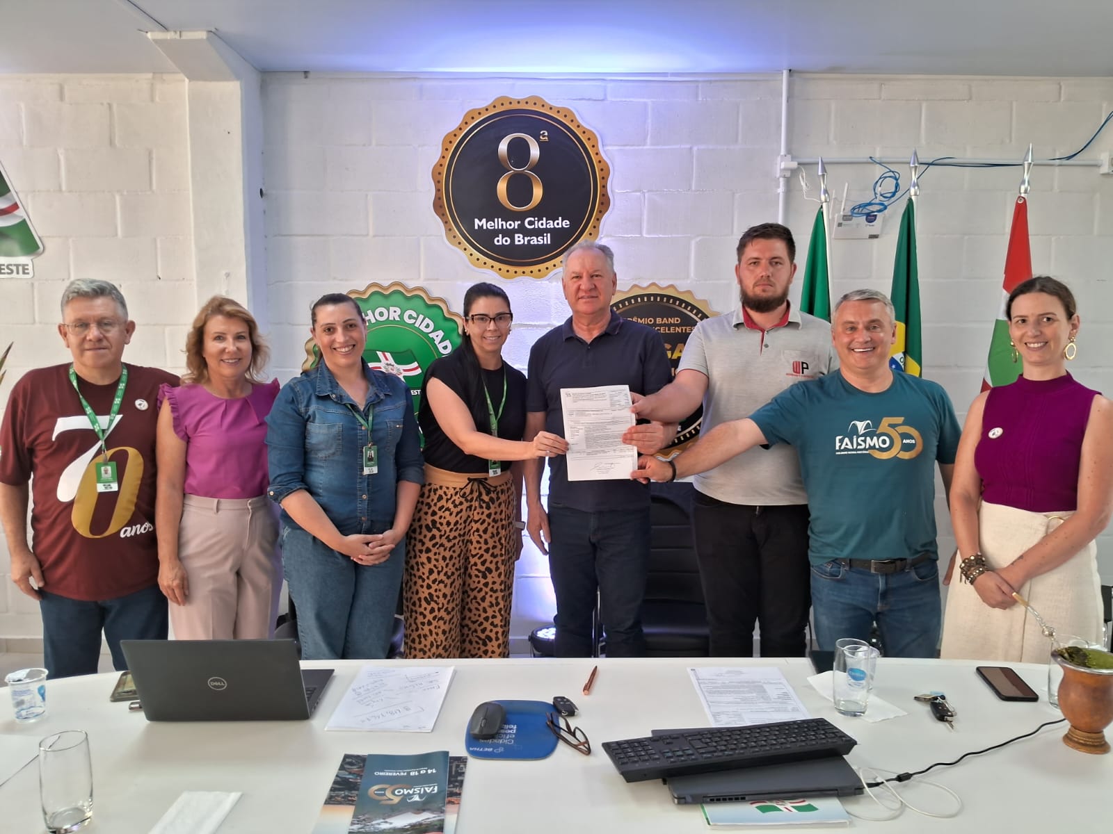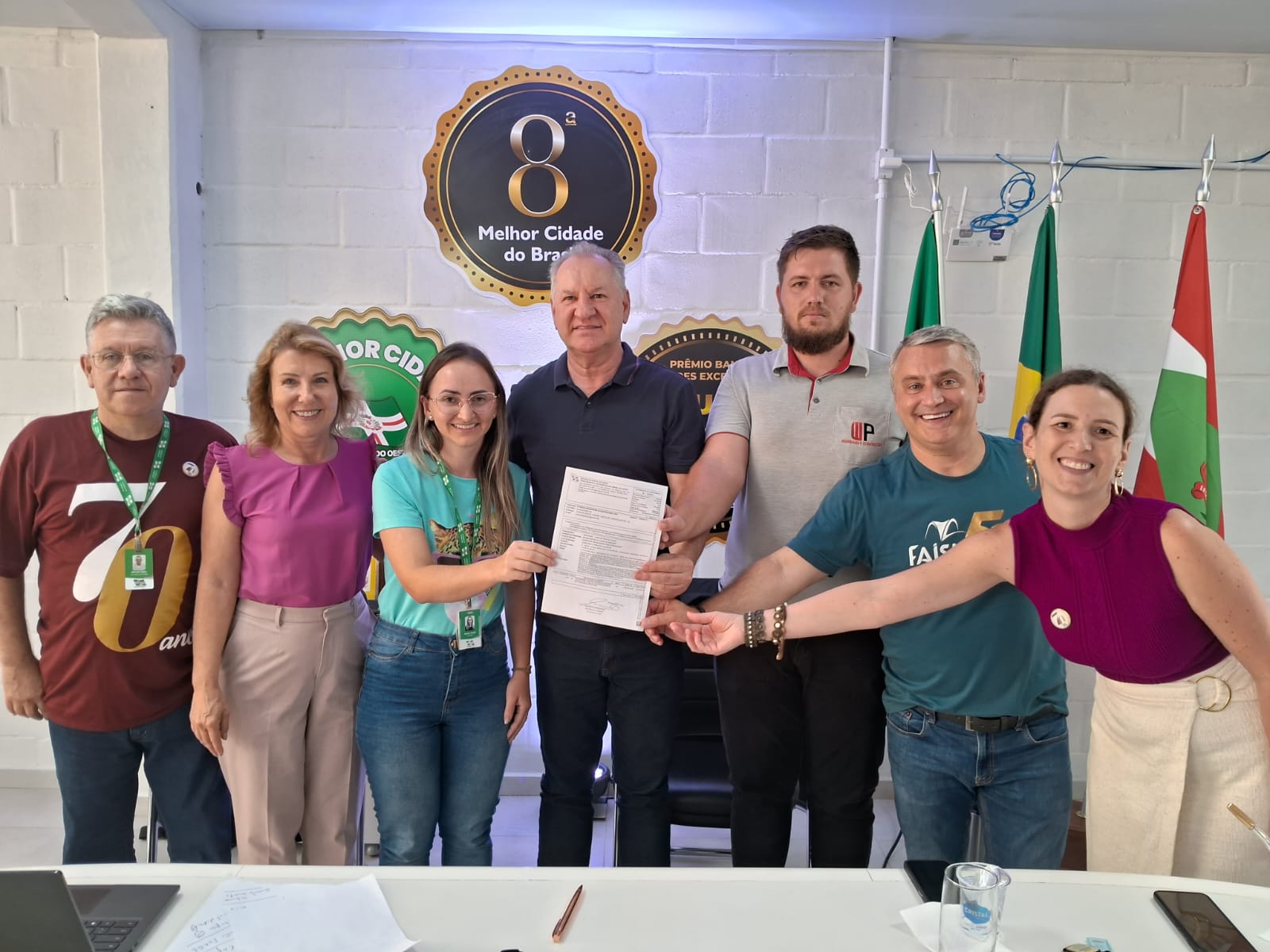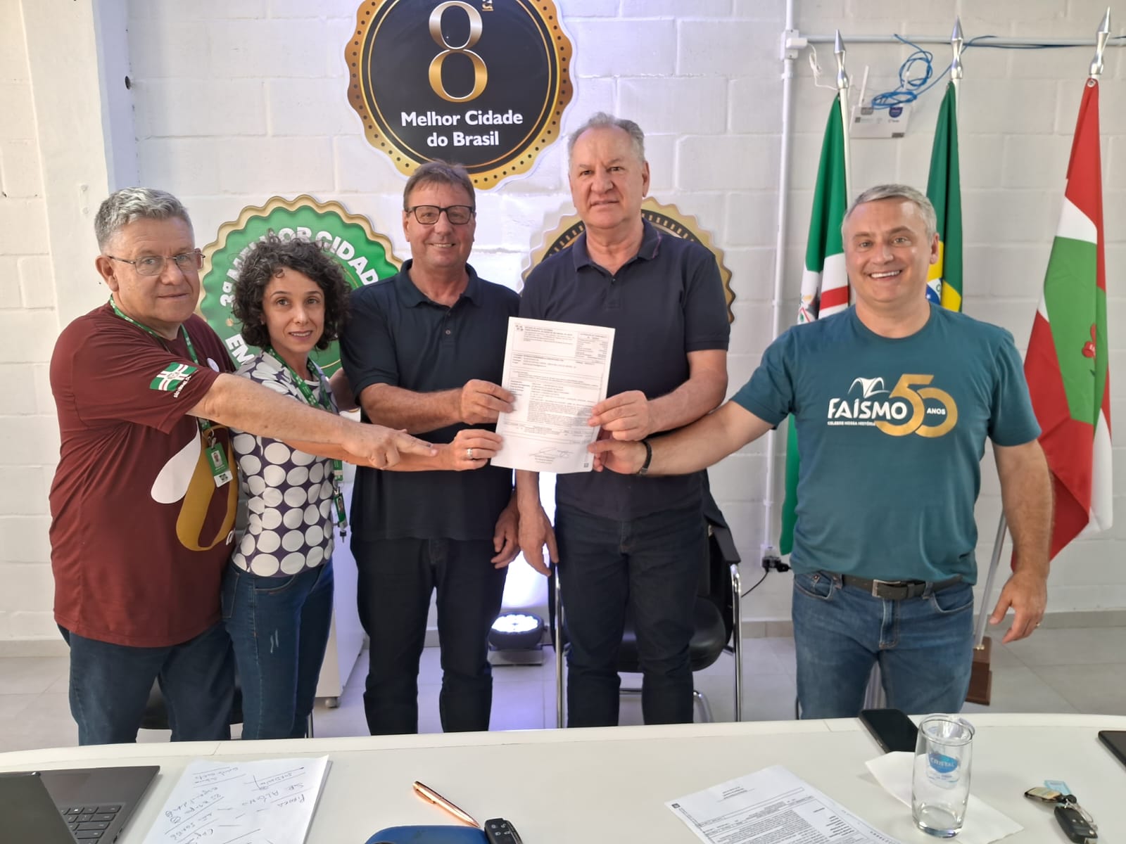 O ato aconteceu na tarde desta sexta-feira (16), no Gabinete da Administração Municipal, que está instalado no Parque da Faismo, e contou com a presença, ainda, de servidores da Secretaria, representante do Conselho Municipal de Saúde, e diretores das empresas vencedoras das licitações.