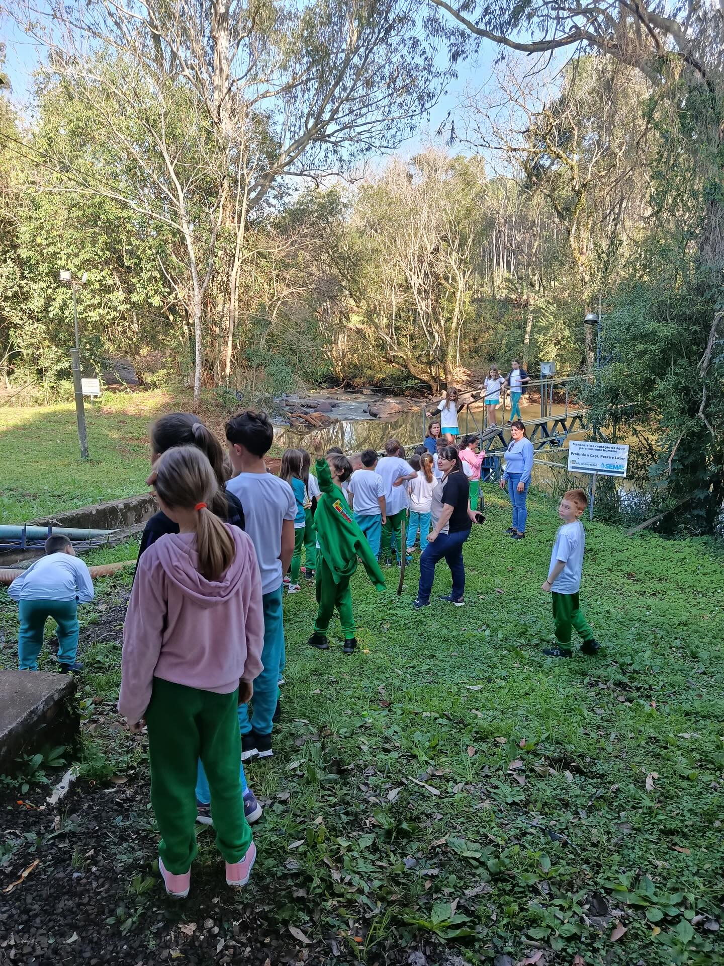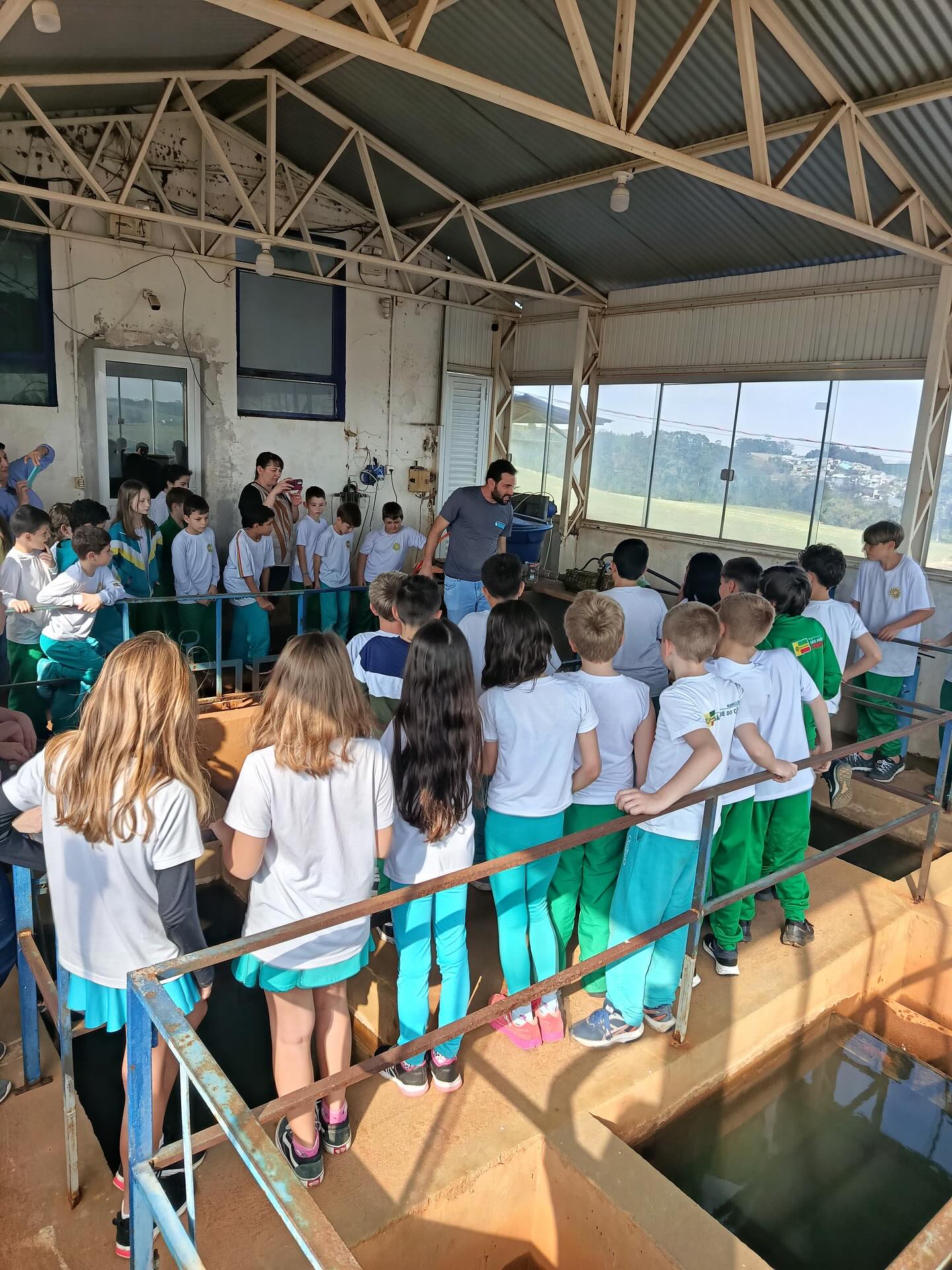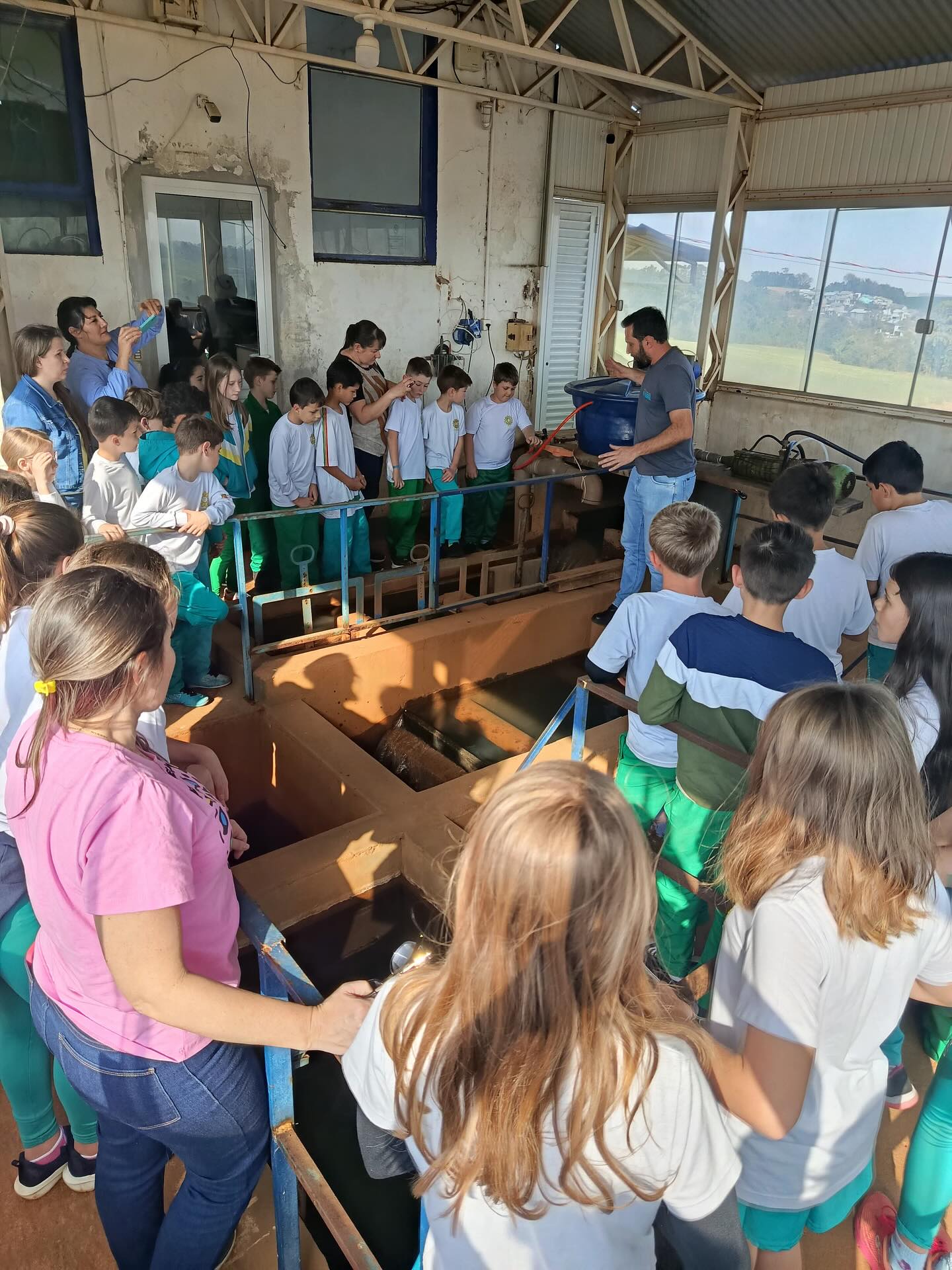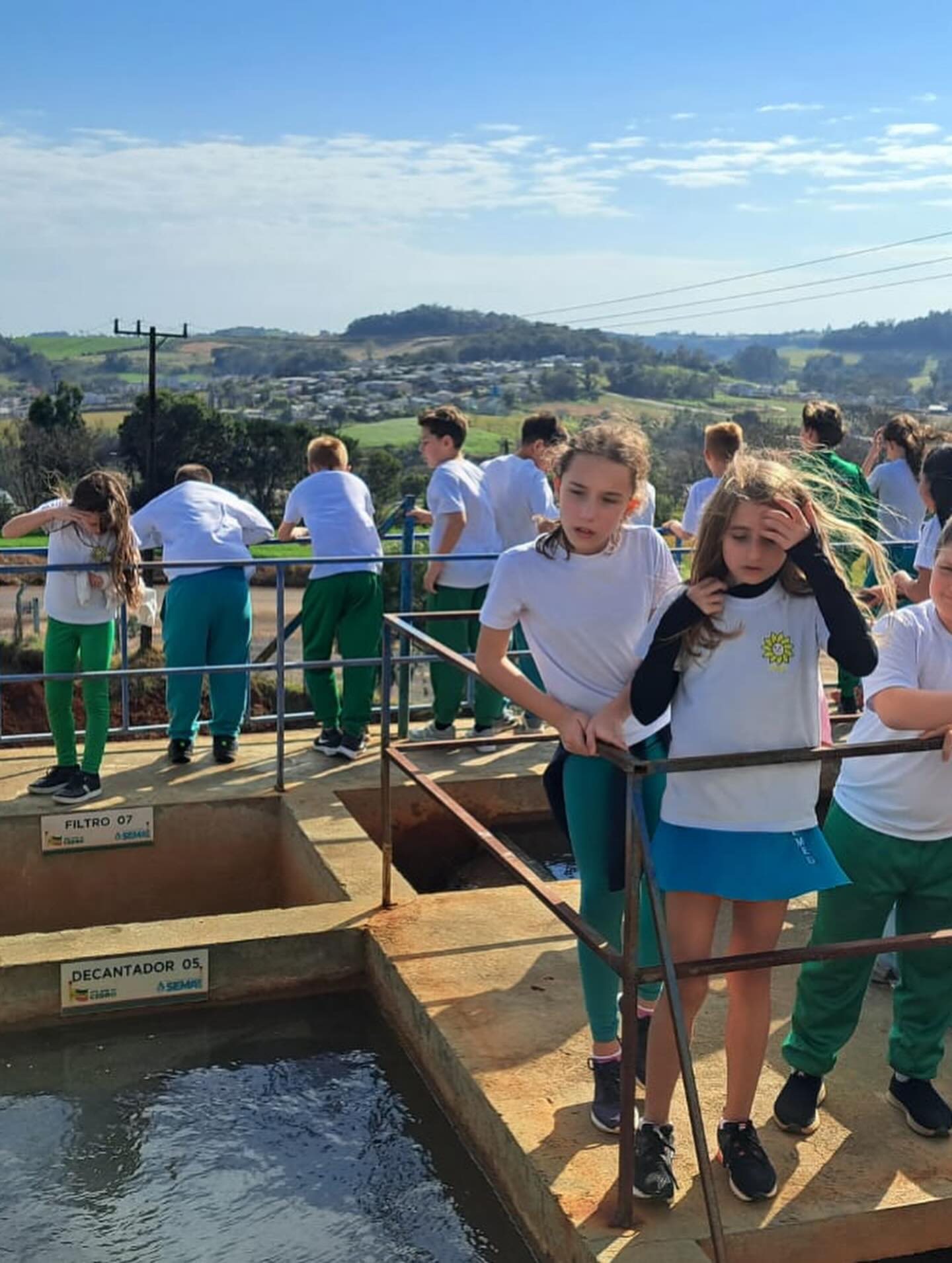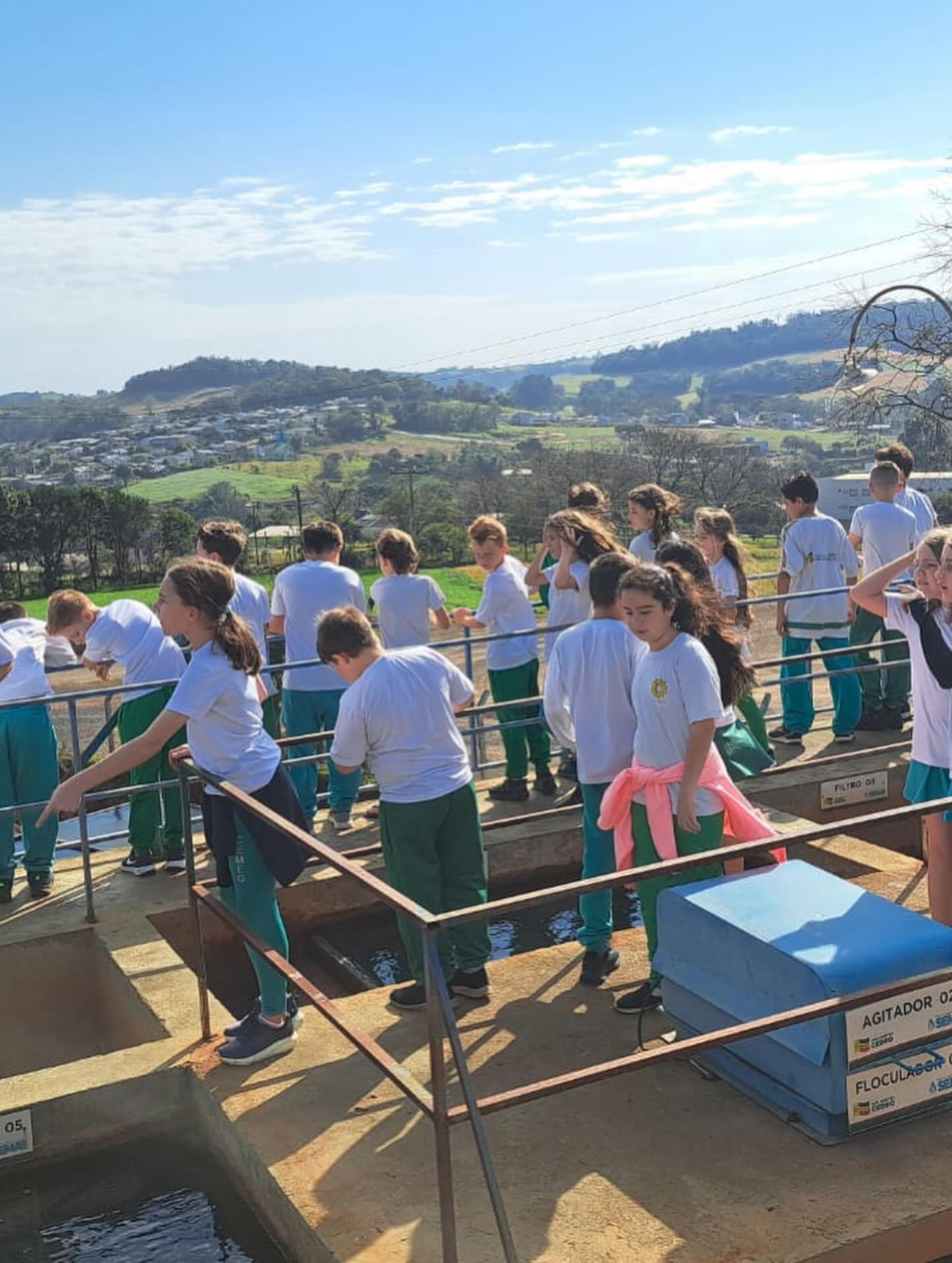 A programação incluiu a passagem pelo ponto de captação no Rio, em Santa Terezinha, e pela Estação de Tratamento de Água, situada próxima ao trevo de acesso ao município. Durante a visita, os alunos puderam observar de forma detalhada todas as etapas do sistema, desde a captação até os processos de purificação responsáveis por assegurar água potável à população.
