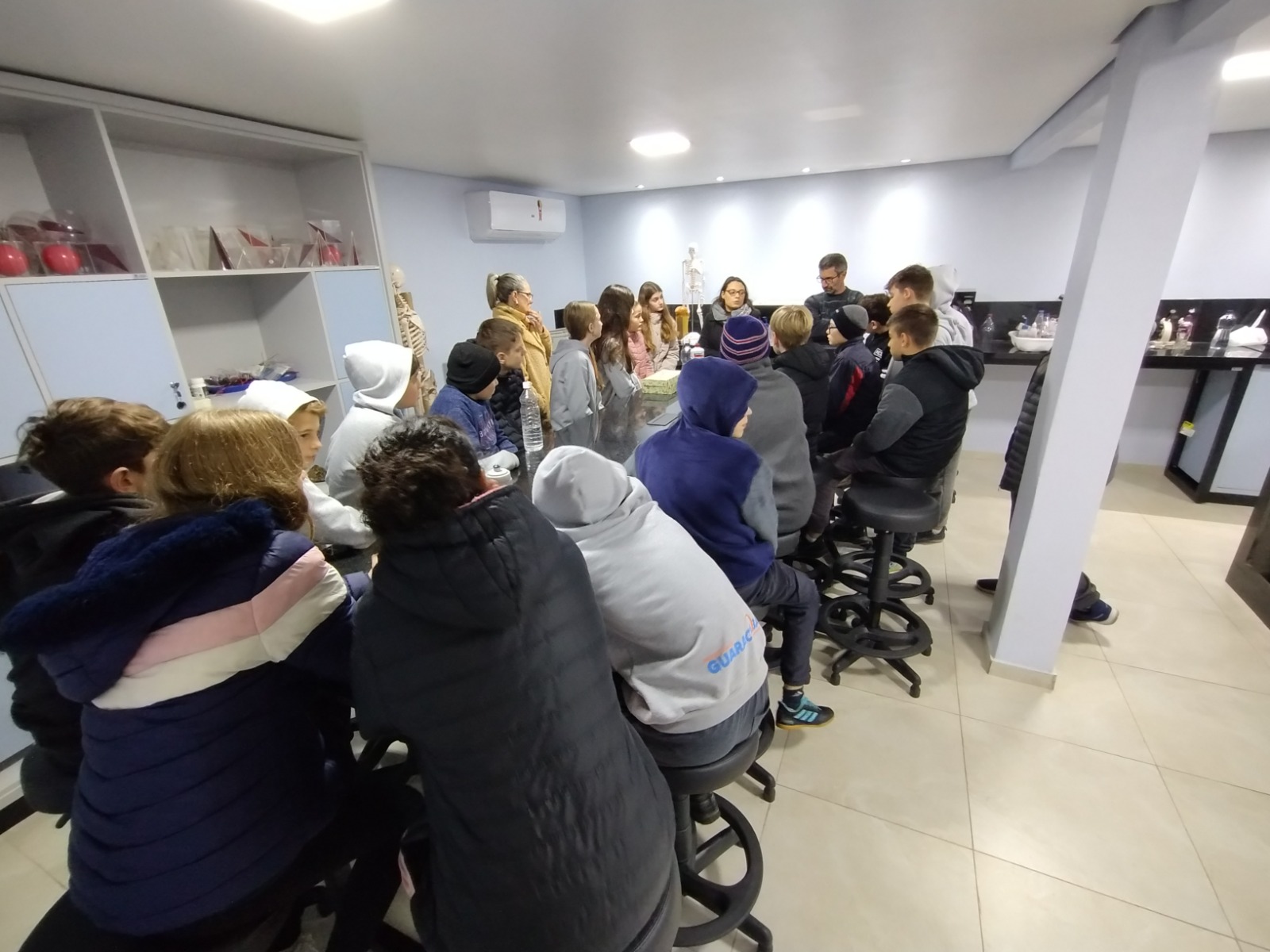Nesta sexta-feira, dia 14, os alunos realizaram uma atividade onde prepararam uma receita de repelente natural para ser entregue nas turmas dos 6º anos, aliando conhecimento científico com a prevenção à dengue. A atividade ocorreu no laboratório de ciências, sendo ministrada pelos professores da escola.