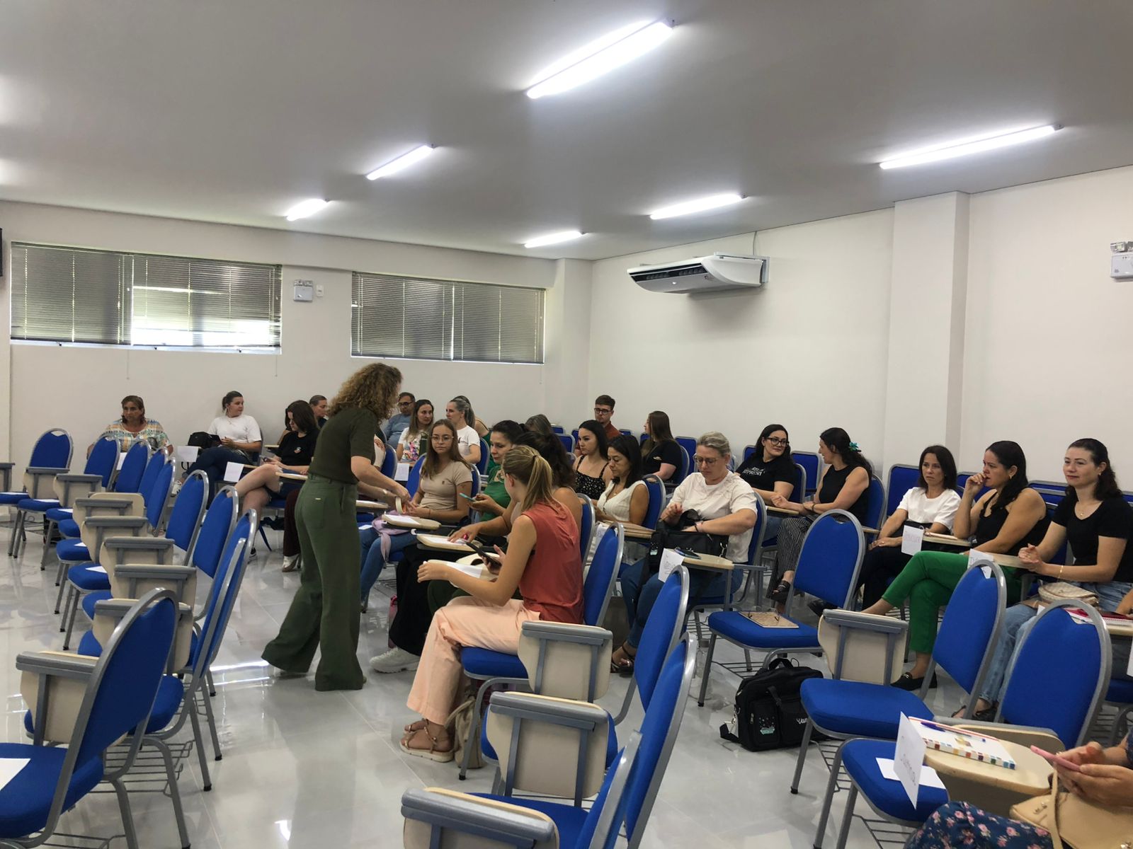 A formação foi ministrada por Daiane Zamoner, que abordou estratégias pedagógicas alinhadas aos conceitos de multiletramentos, destacando a importância de práticas que dialoguem com diferentes linguagens, contextos culturais e formas de comunicação presentes no cotidiano dos estudantes.