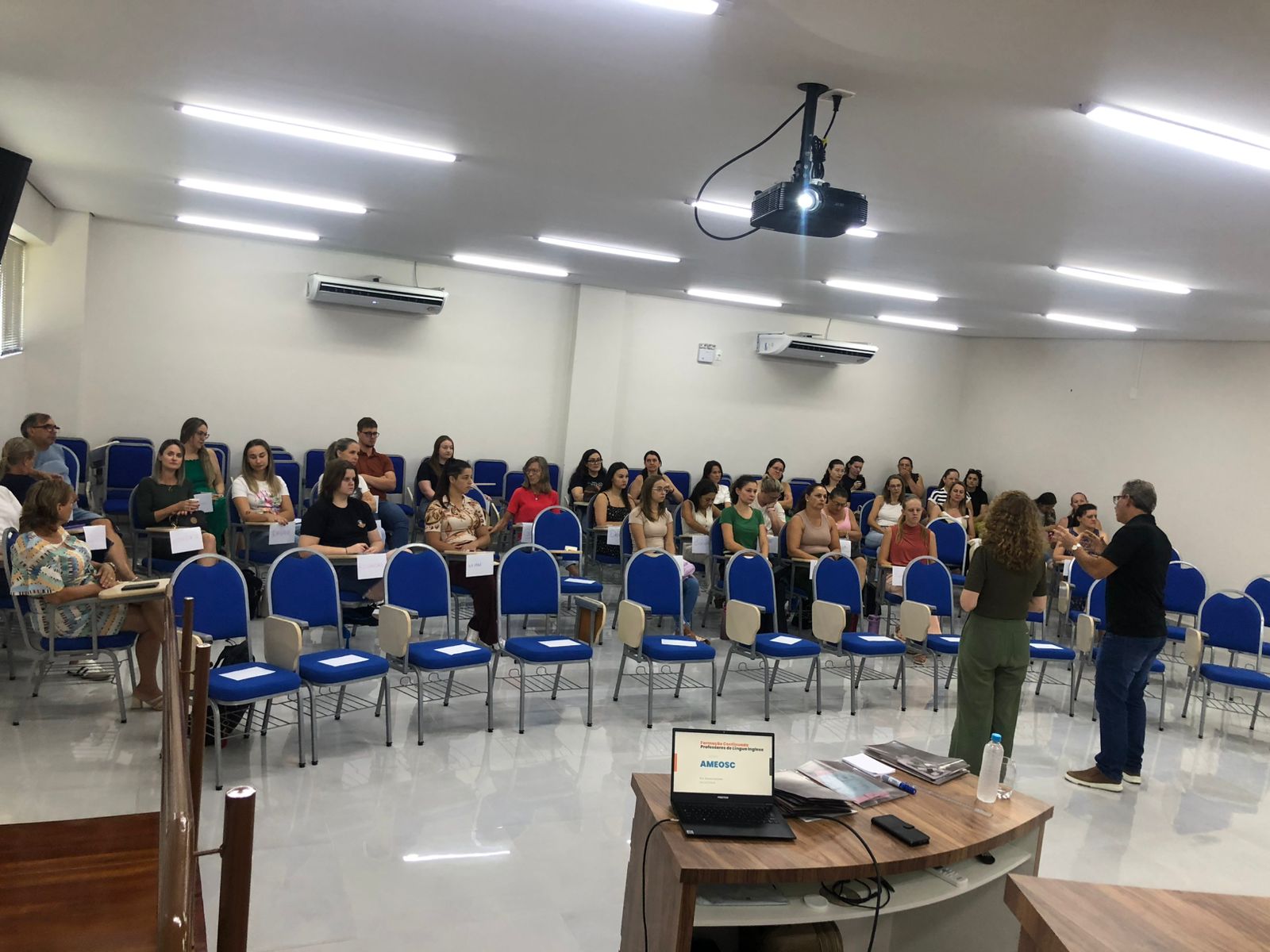 O curso contou com a organização conjunta da AMEOSC e do Colegiado de Educação da AMEOSC, fortalecendo o trabalho cooperado entre os municípios na construção de ações formativas alinhadas às demandas da educação regional.
