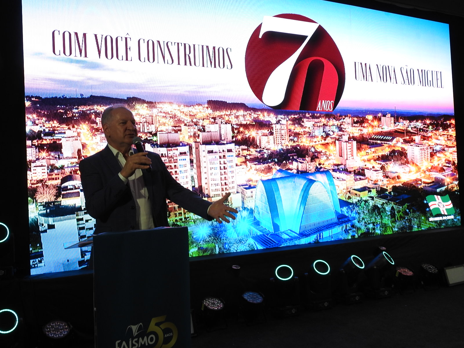 O prefeito, Wilson Trevisan, destacou que a comemoração dos 70 anos merece uma programação especial, e será um presente para toda a população de São Miguel do Oeste. Ele agradeceu a parceria da Acismo e CDL, que realizarão a Faismo como parte desses festejos, celebrando, ainda, os 50 anos da Feira.