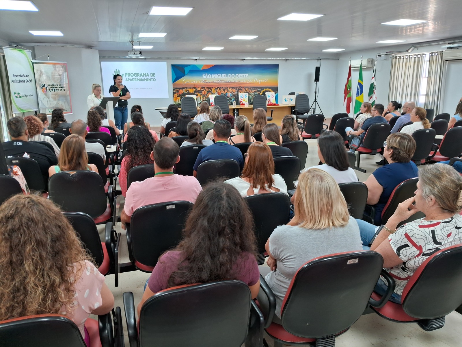 A explanação sobre o programa foi conduzida por profissionais que atuam junto ao Serviço de Proteção Social Especial de Alta Complexidade e Abrigo Institucional, contemplando ainda, depoimentos de padrinhos e madrinhas que já vivenciaram a experiência do acolhimento.