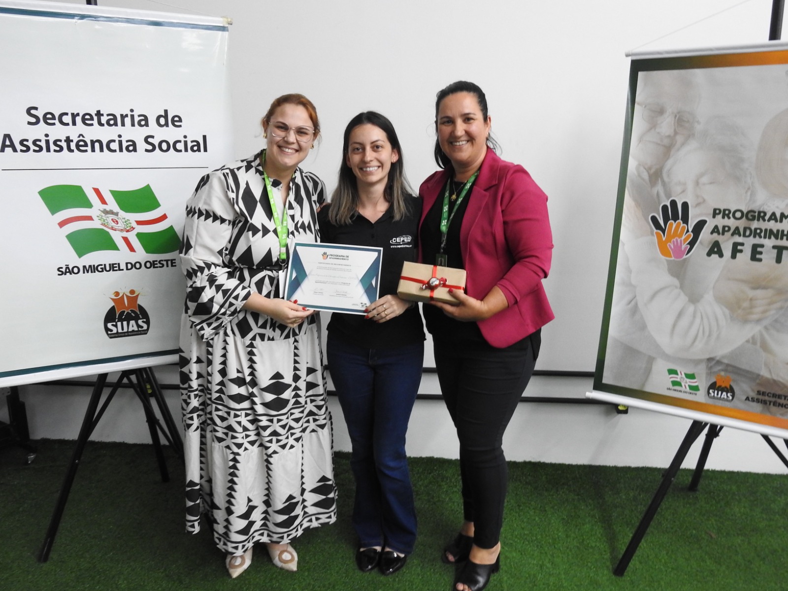 No final do encontro, foram homenageados os padrinhos e madrinhas afetivos Deise Prigol, Jaciara Vivian, Mary Inês Canova, Jairo Luiz Mayer e Salete Klein. E, também, os padrinhos e madrinhas de prestação de serviços Joni Gool, Barbearia Estillo Leão, Studio de Dança Adriana Staudt, CT Balke Team, Escola de Futsal Feminino Gol de Bico, Academia Alternativa, SESC e CEPED.
