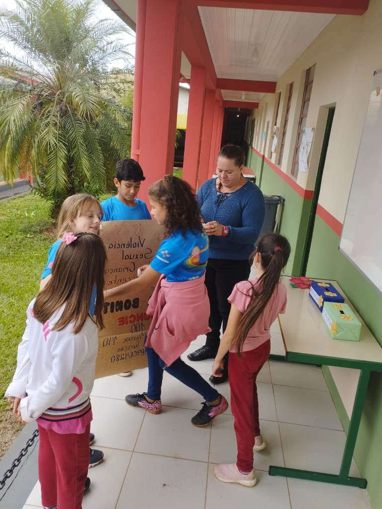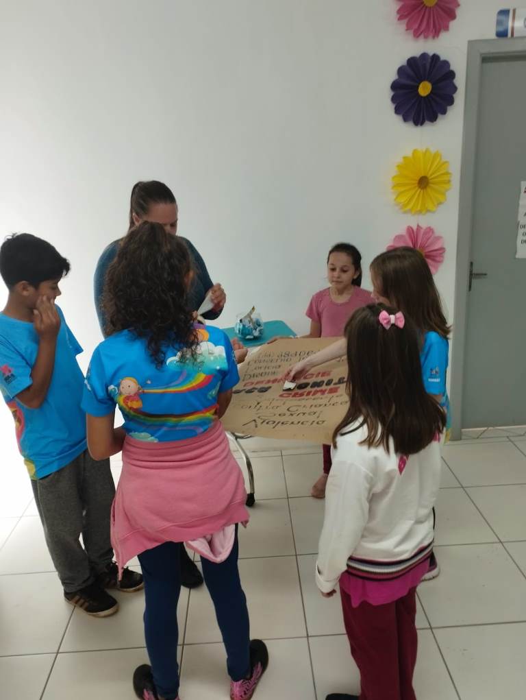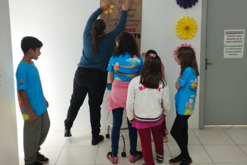 Uma das ações realizadas é a criação de cartazes abordando o tema, os quais serão afixados em todas as escolas e unidades de saúde do município. Esses cartazes estão sendo confeccionados pelas crianças que frequentam o Serviço de Convivência e Fortalecimento de Vínculos.