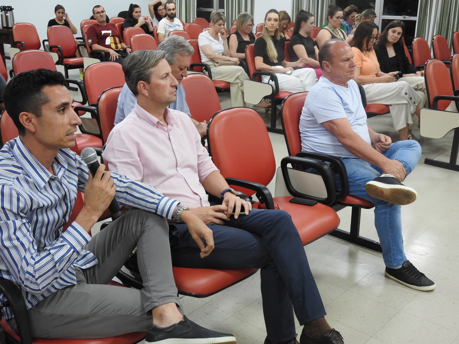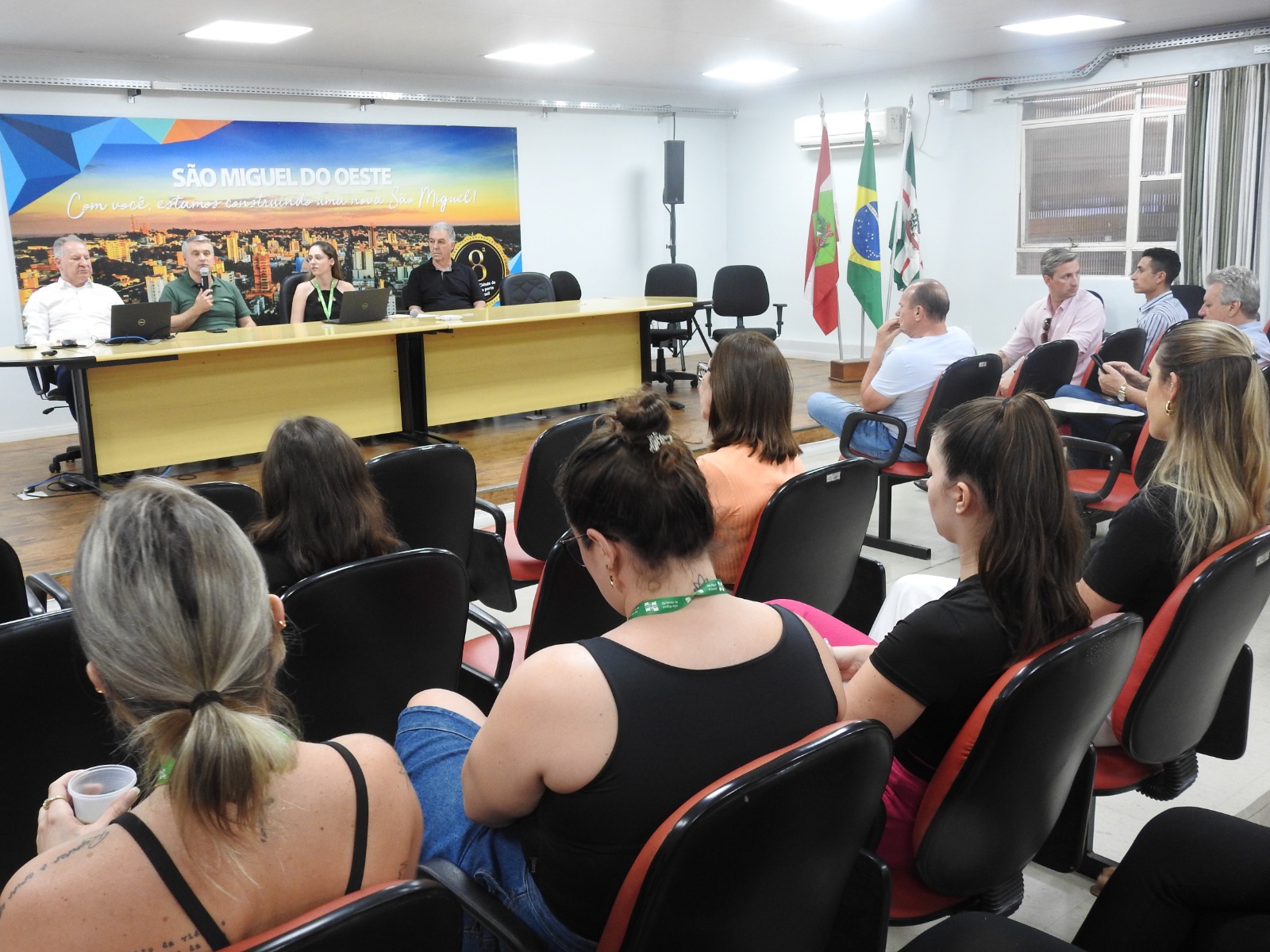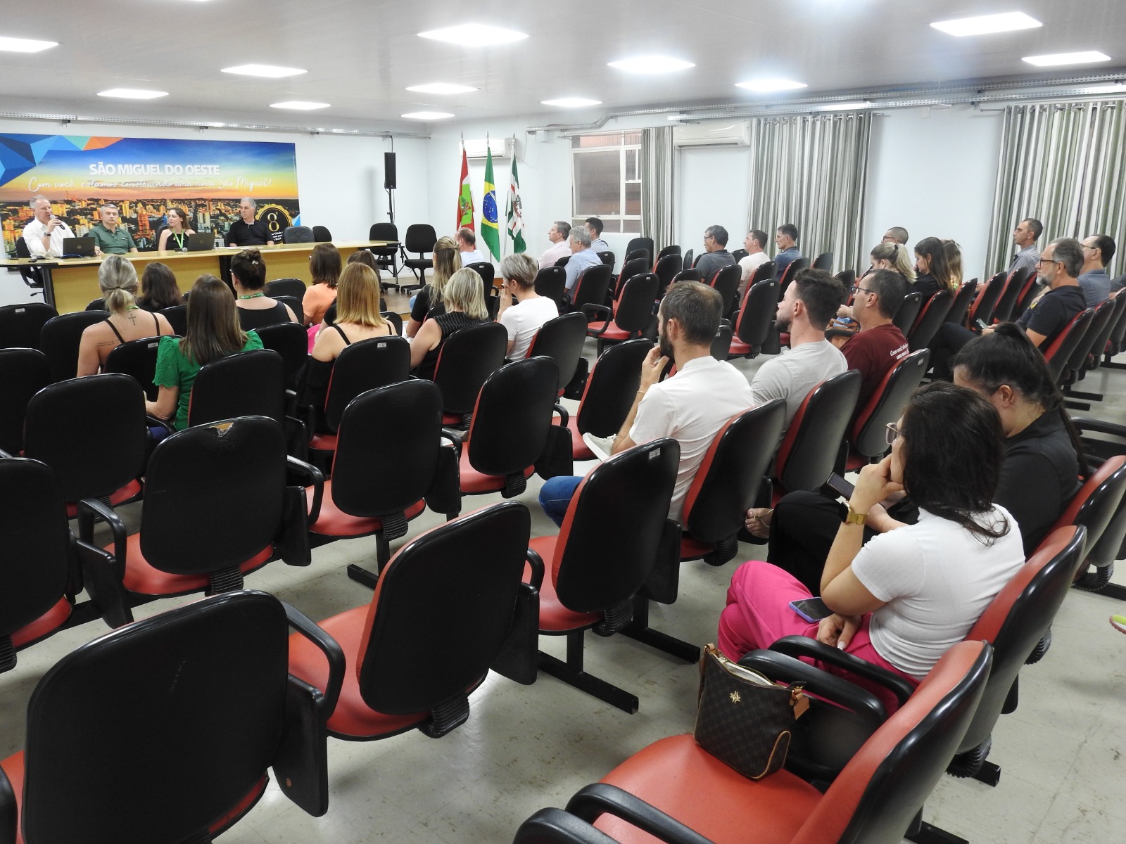 Cerca de 50 pessoas participaram da Audiência Pública para Elaboração do Orçamento 2025, realizada pela Administração Municipal, a partir das 18h30 desta quinta-feira (24), no Salão Nobre da prefeitura de São Miguel do Oeste. O público foi composto por servidores, lideranças, representantes de entidades, associações de moradores e população em geral.