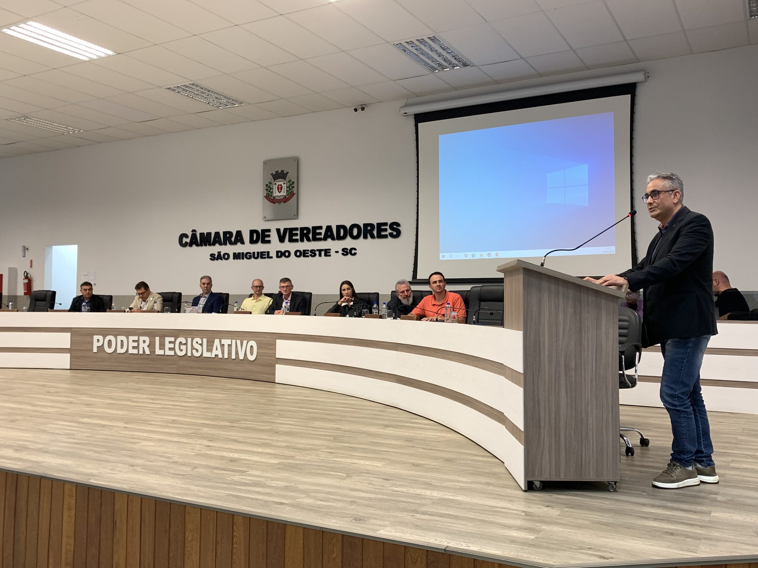 Na noite desta segunda-feira (28), a Câmara de Vereadores de São Miguel do Oeste foi palco de uma audiência pública que reuniu autoridades, lideranças locais e moradores para discutir a urgente revitalização da Avenida Willy Barth e os trechos das BRs 163 e 282. O evento contou com a participação do superintendente do DNIT em Santa Catarina, Alysson Andrade, do vice-prefeito Carlos Agostini (Tatu), vereadores e representantes da comunidade.