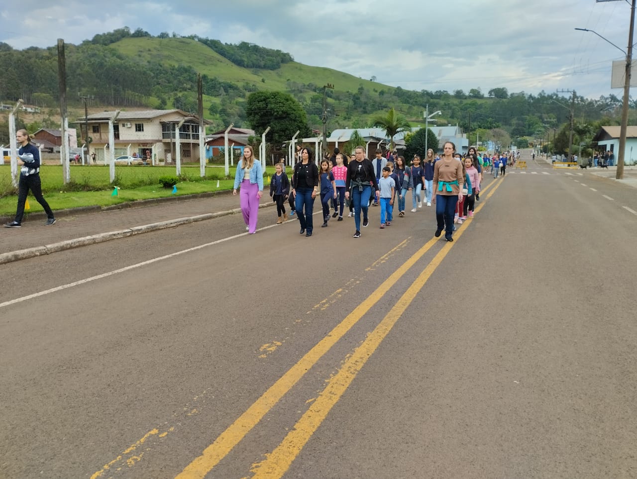 Participaram da caminhada 17 grupos de escolas e entidades do município