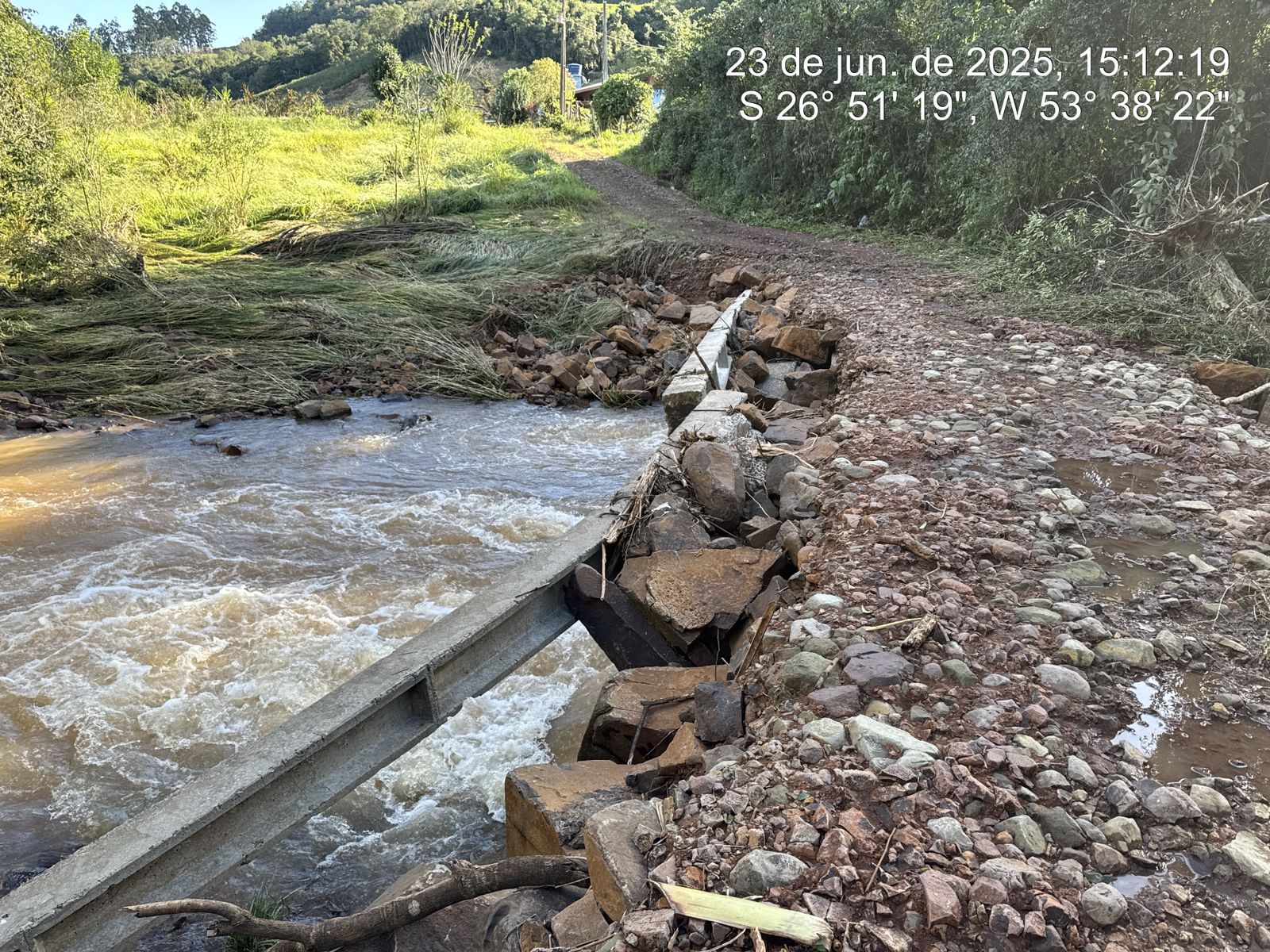 Informamos que, em decorrência deste fenômeno, 18 propriedades atingidas, sendo 14 residências e 12 unidades de produção agropecuária, incluindo aviários e galpões e inúmeras árvores e postes foram danificados/quebrados. Além disso, estima-se que todas as pontes que interligam as comunidades do interior foram afetadas pela força da água, tendo sua estrutura e pontilhões danificados.