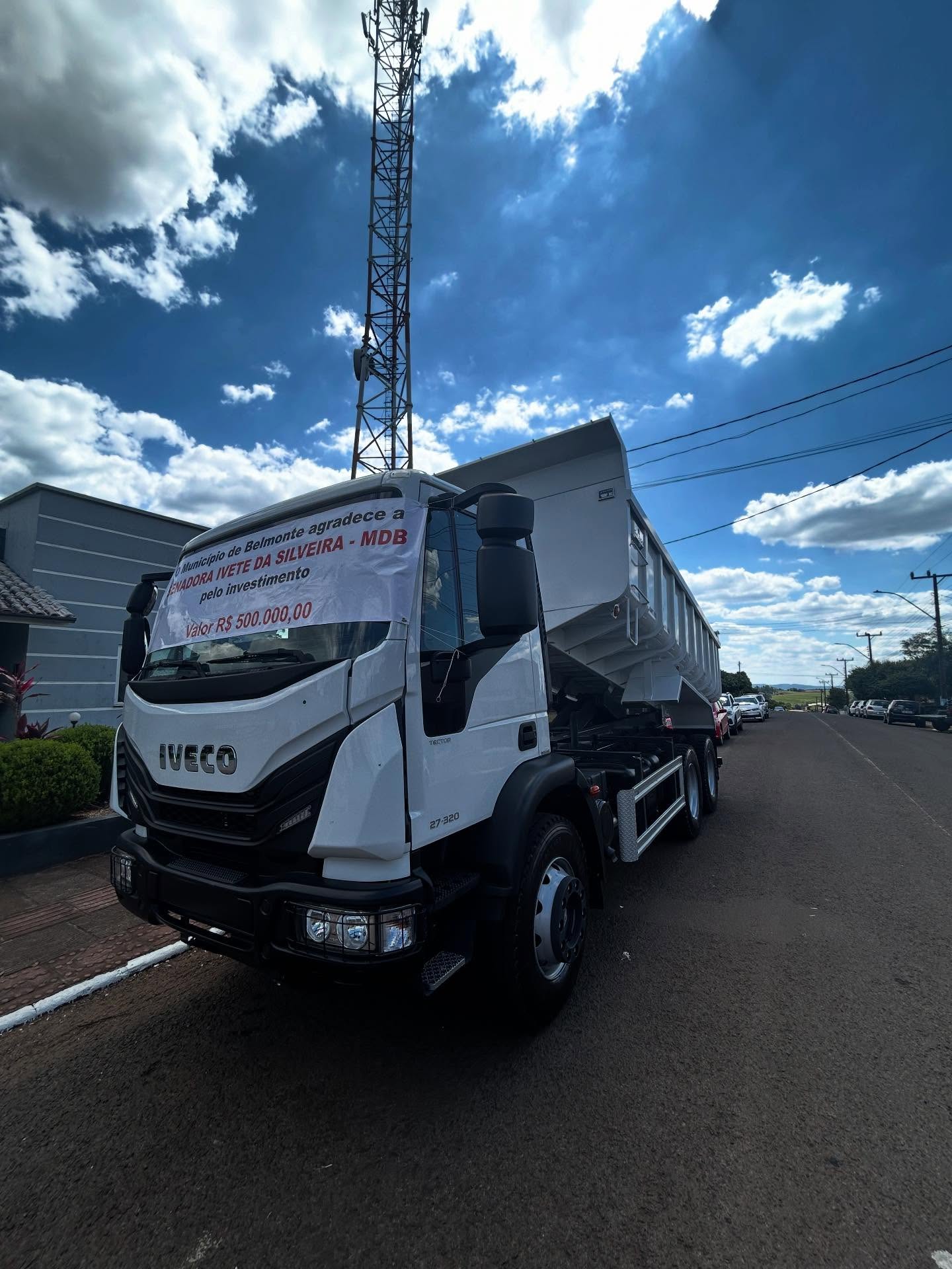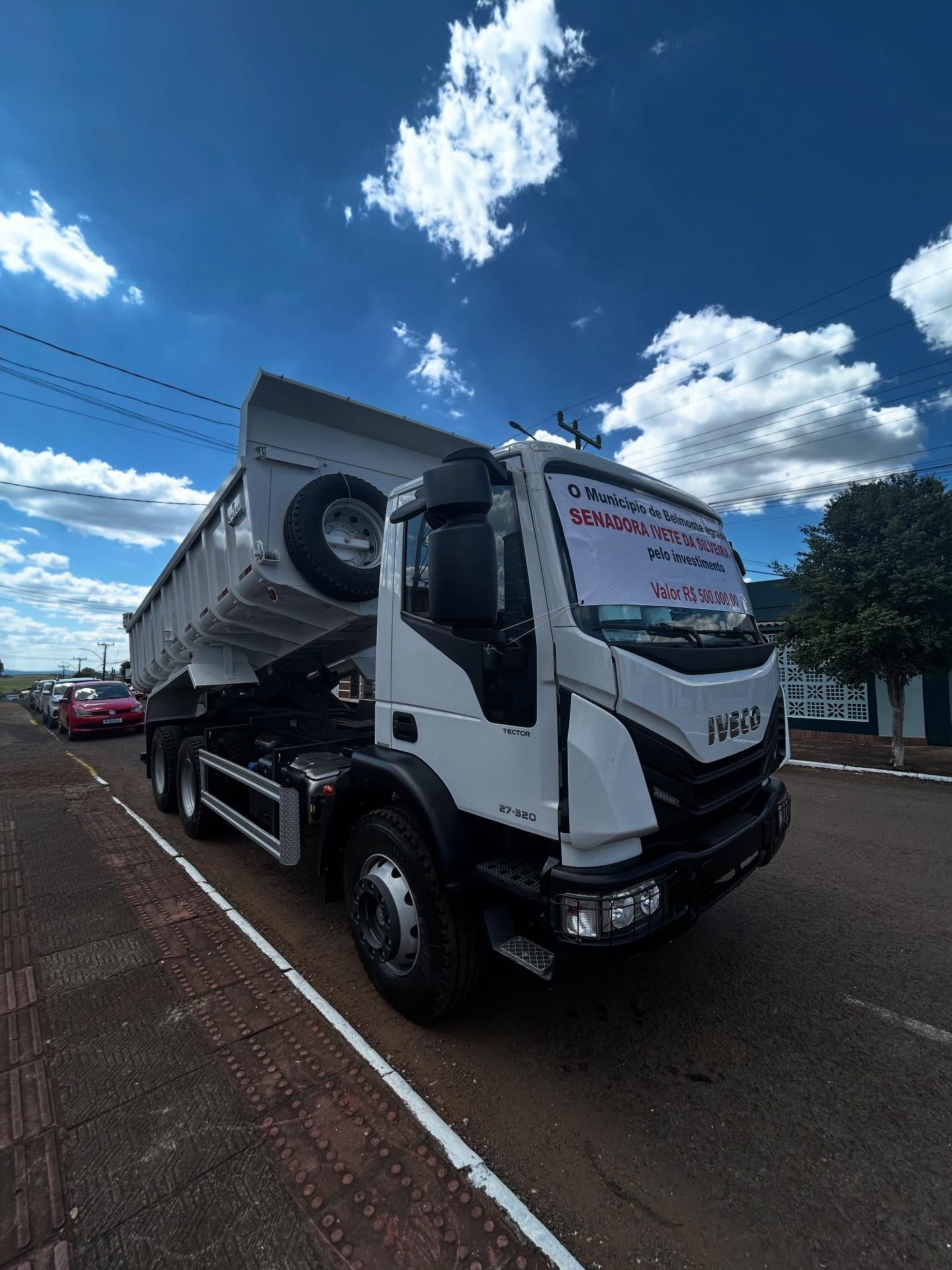 O caminhão Iveco Tector 27-320, modelo 2025, foi adquirido por meio de um investimento de R$ 585.000,00, sendo R$ 500.000,00 provenientes de emenda parlamentar da senadora Ivete da Silveira, e o valor restante como contrapartida do município.