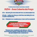 A programação inicia às 7h, com recepção dos participantes e alongamentos na praça central. Às 7h45, o grupo segue em caminhada até o campo municipal, em um trajeto pensado para todas as idades. Durante o percurso, haverá ponto de apoio com água e frutas, garantindo mais conforto e energia para quem participar.
