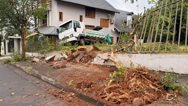 Última atualização: 2025/12/09 11:02:09Um caminhão da Casan desceu a rua sem controle na manhã desta terça-feira em São Miguel do Oeste, logo após ter sido estacionado próximo a um ponto de abastecimento. O veículo percorreu a via de forma desgovernada e atingiu um automóvel, causando danos significativos antes de quebrar uma cerca e parar ao lado de uma residência.