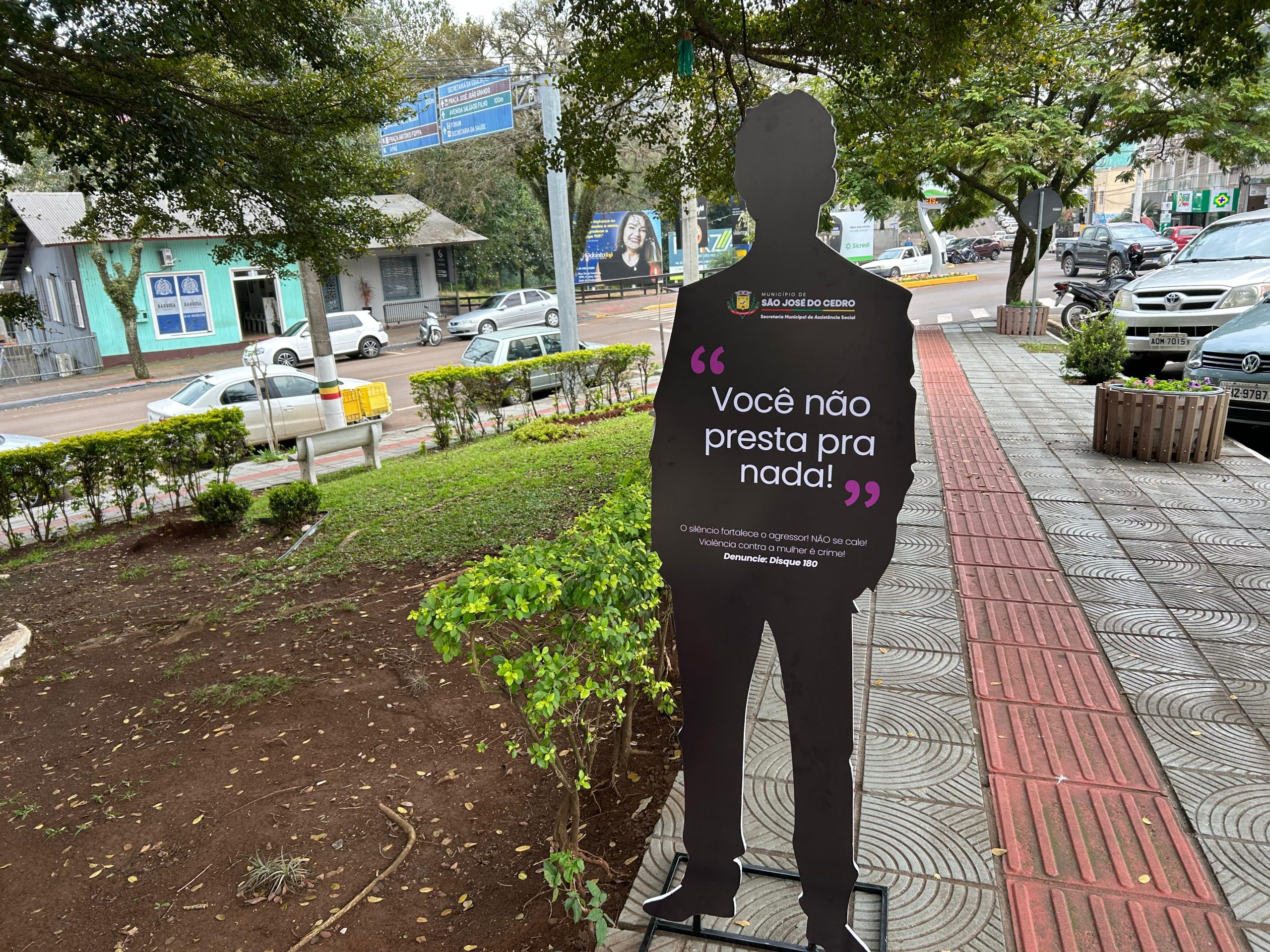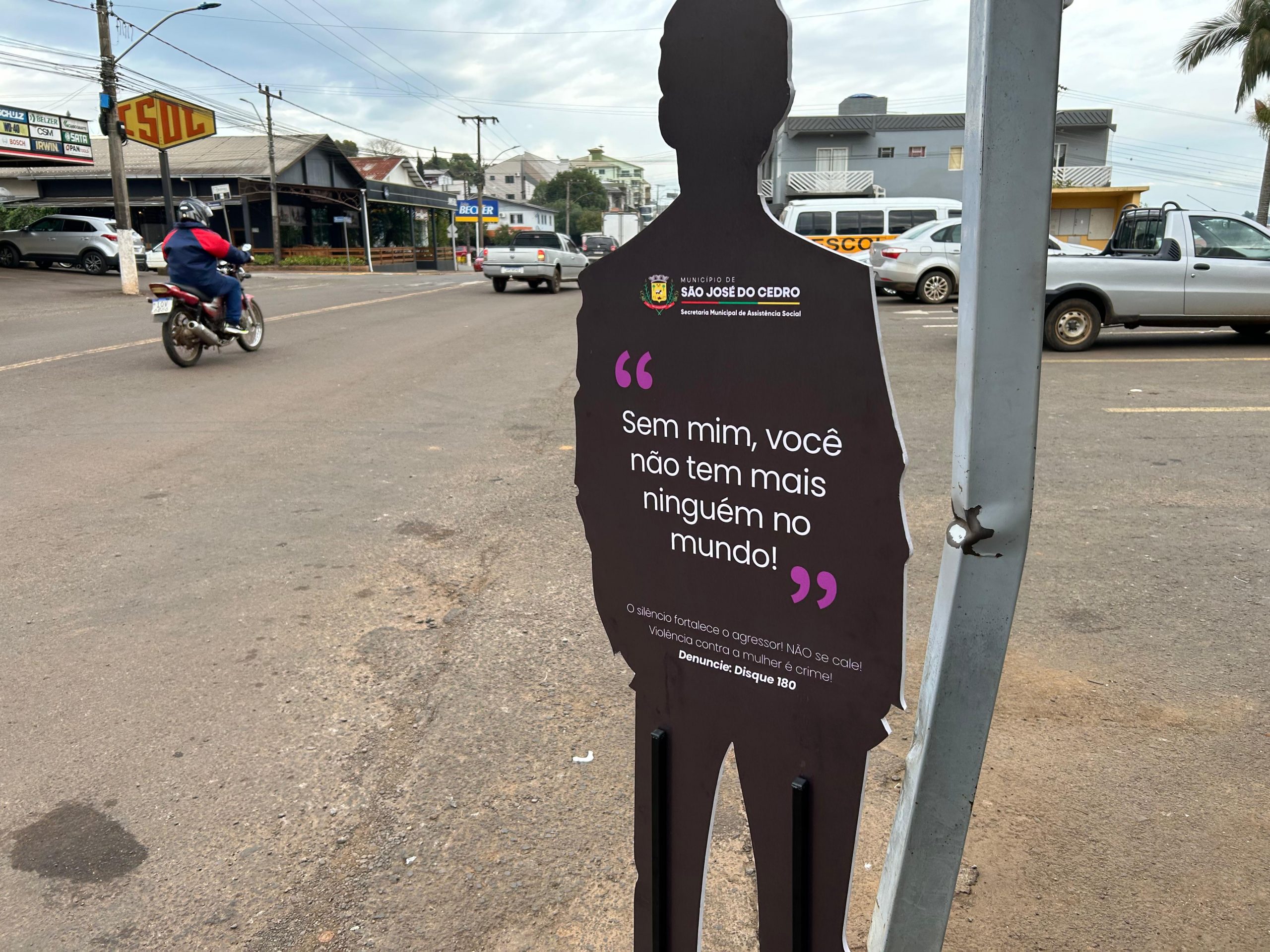 Última atualização: 2025/08/07 1:34:40Em alusão aos 19 anos da Lei Maria da Penha, a Secretaria de Assistência Social de São José do Cedro deu início nesta semana à campanha Agosto Lilás, voltada à conscientização e combate à violência contra a mulher. Como forma de sensibilizar a população, foram espalhadas silhuetas femininas em diferentes pontos da cidade, exibindo frases reais e recorrentes de agressores, que ilustram a violência psicológica presente no ciclo da agressão.
