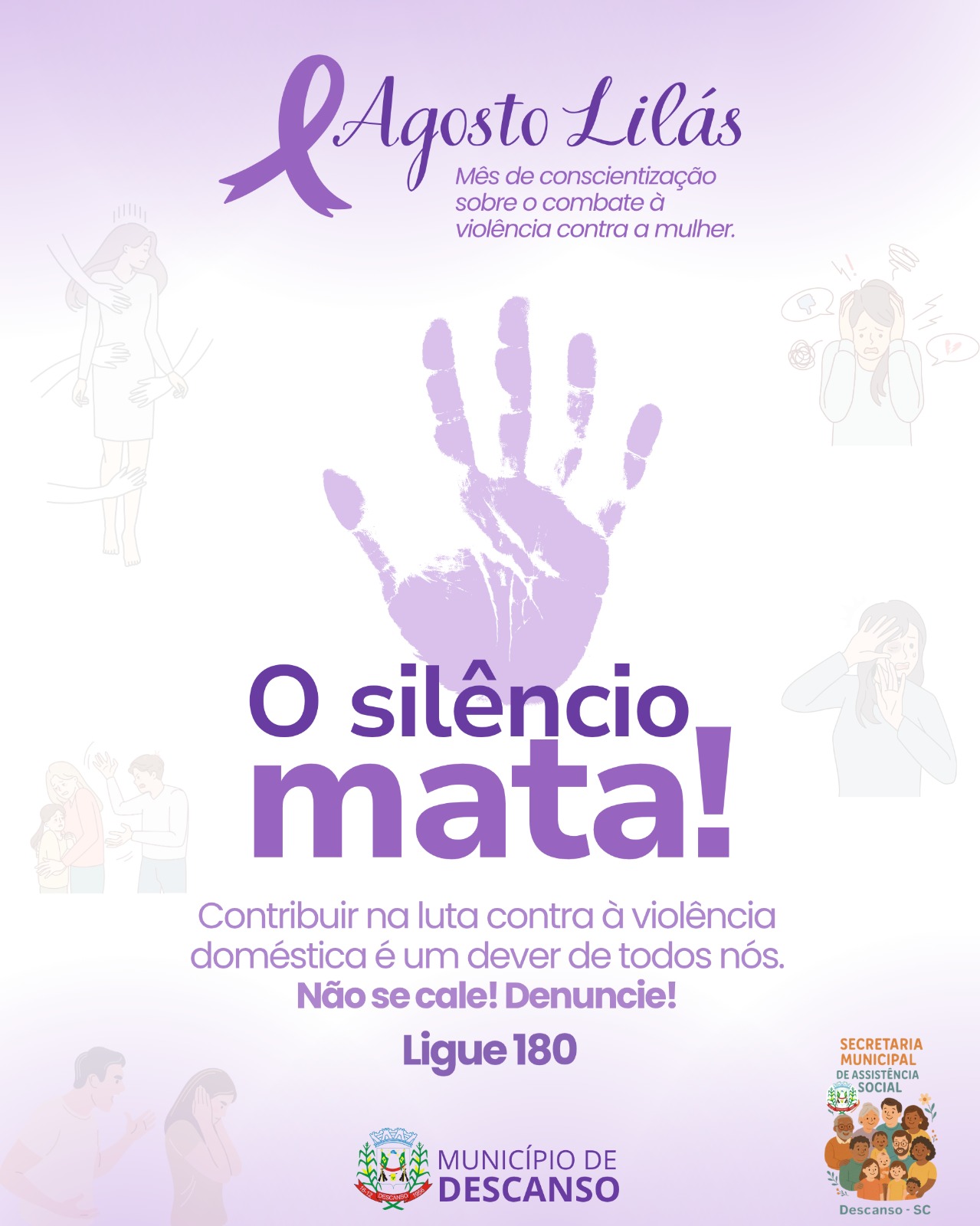 Com a mensagem “Não se cale, denuncie”, a campanha busca mobilizar toda a sociedade para romper o ciclo de violência, proteger as vítimas e responsabilizar os agressores. Com base nos dados divulgados pelo Observatório de Violência contra a Mulher, disponível no portal da Assembleia Legislativa, o município de Descanso registrou, de janeiro a junho deste ano, 46 casos nos canais de denúncia, envolvendo ameaças, estupro, injúria e lesão corporal.