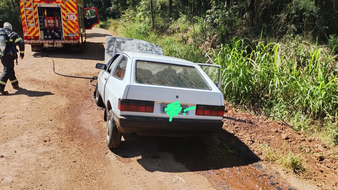 Um veículo foi consumido pelo fogo na manhã desta quarta-feira (1º), na Linha Santa Catarina, interior de São Miguel do Oeste. A ocorrência foi atendida pelo 12º Batalhão de Bombeiros Militar por volta das 11h37.