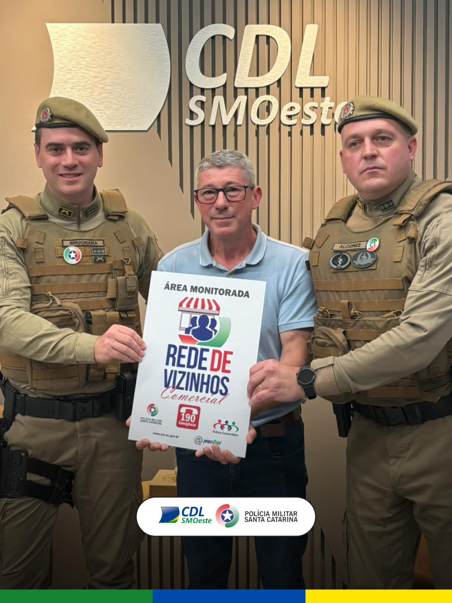Última atualização: 2026/02/06 1:49:56Na tarde desta quinta-feira(05/02), a Câmara de Dirigentes Lojistas (CDL) de São Miguel do Oeste, em parceria com a Polícia Militar, iniciou a entrega das placas de identificação da Rede de Vizinhos Comercial, ação voltada ao reforço da prevenção e da segurança nos estabelecimentos do município.