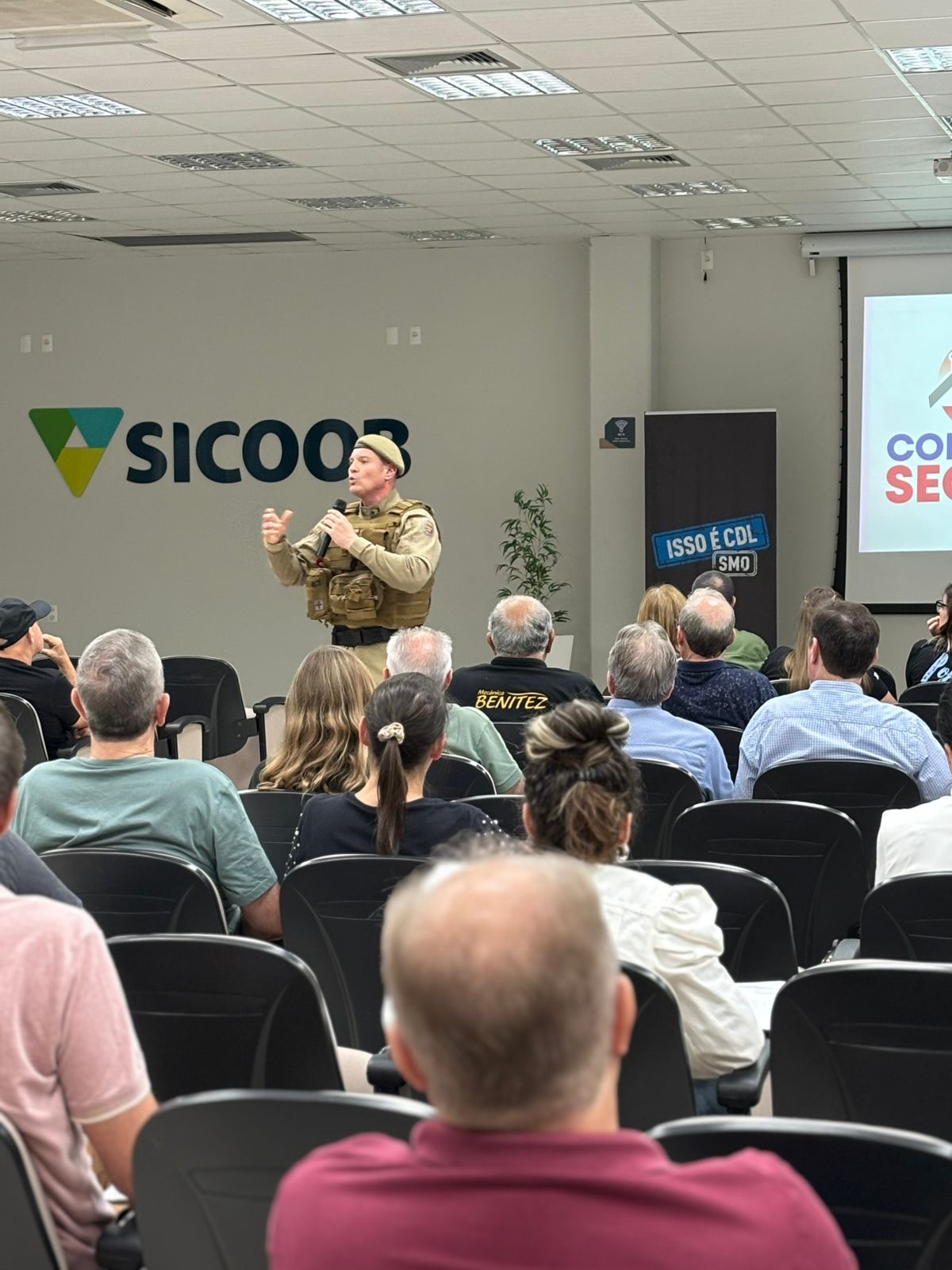 Última atualização: 2025/10/28 8:56:36A Câmara de Dirigentes Lojistas (CDL) de São Miguel do Oeste, em parceria com a Polícia Militar de Santa Catarina, realizou na noite do último 27 de outubro, no Auditório do Sicoob São Miguel, o lançamento oficial da Rede de Vizinhos Comercial — um projeto que busca aproximar empresários e forças de segurança para fortalecer a prevenção e o combate à criminalidade no comércio local.