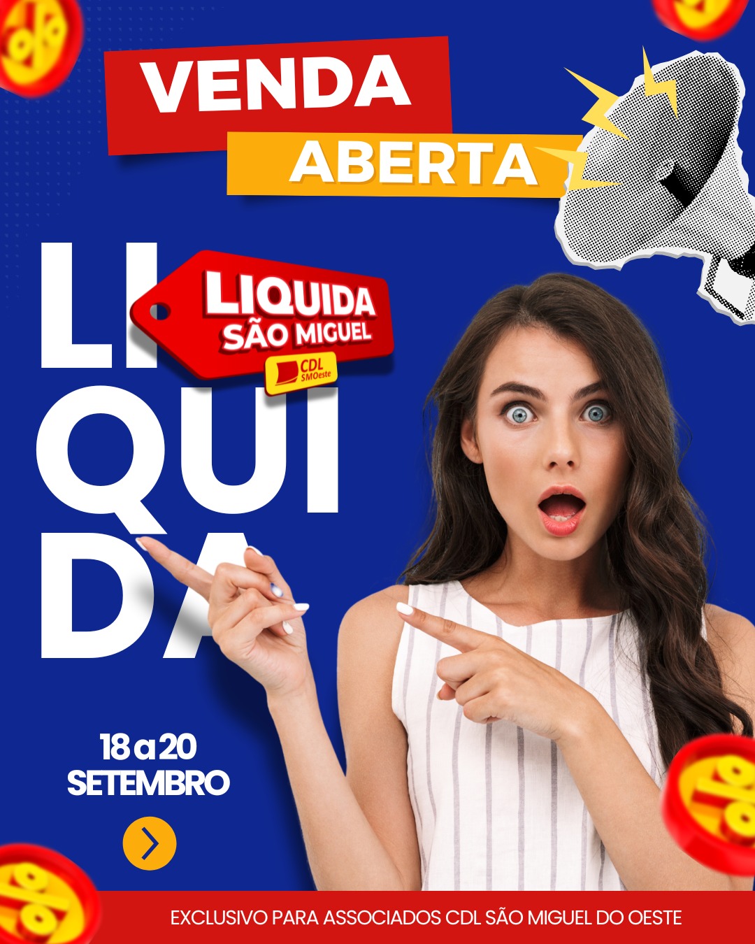 Última atualização: 2026/04/16 9:52:51A Câmara de Dirigentes Lojistas (CDL) de São Miguel do Oeste deu o pontapé inicial para um dos momentos mais aguardados pelos empreendedores da região. Já estão oficialmente abertas as vendas de espaços para o Liquida São Miguel 2026. A quarta edição do evento, que já se consolidou como a maior vitrine do varejo no Extremo Oeste catarinense, será realizada nos dias 18, 19 e 20 de setembro, nas dependências do Parque de Exposições Rineu Gransotto.