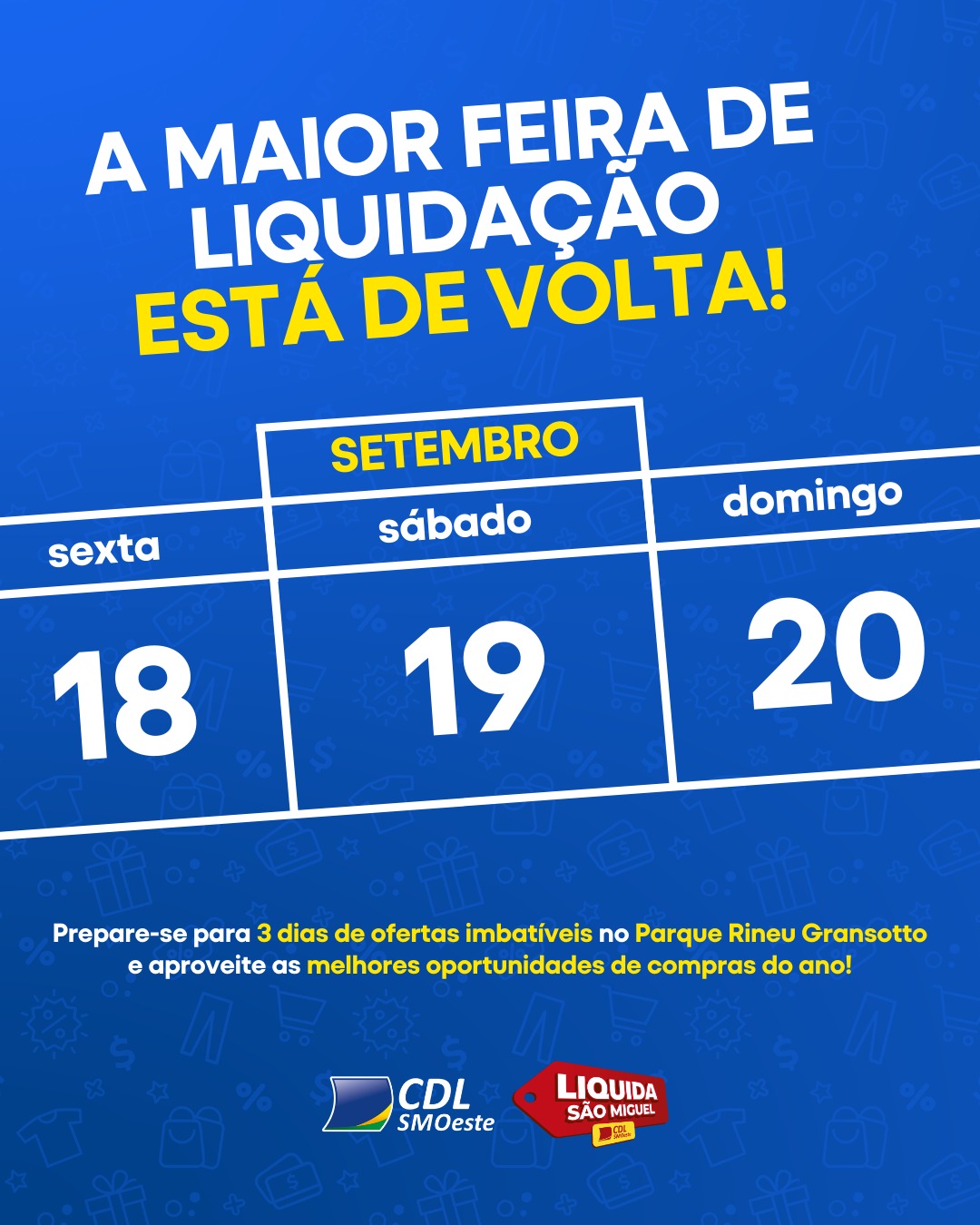 A Câmara de Dirigentes Lojistas (CDL) de São Miguel do Oeste anunciou oficialmente, os detalhes da edição 2026 do Liquida São Miguel. Consolidado como o maior evento de varejo e oportunidades do Extremo Oeste catarinense, a feira já tem data marcada: acontecerá entre os dias 18 e 20 de setembro.