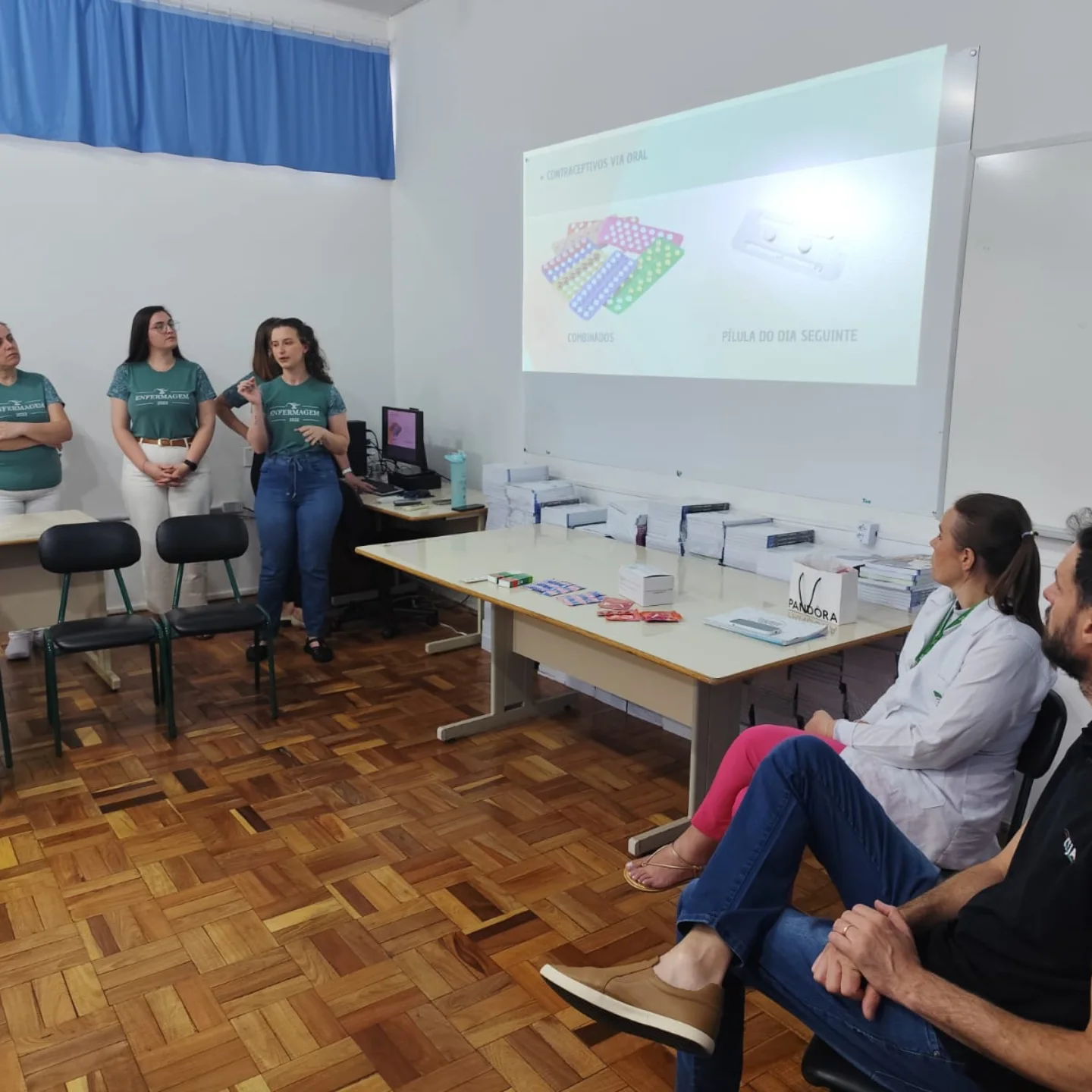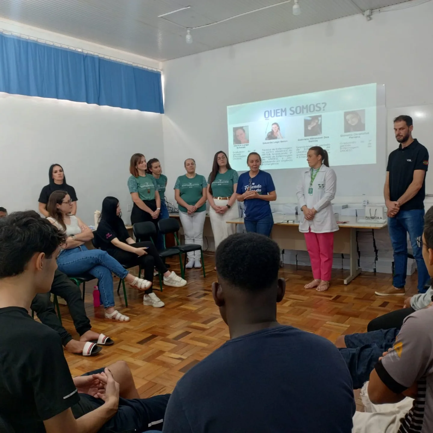 A presença das profissionais da área da saúde contribuiu para a condução do momento, que integrou conhecimento e acolhimento aos estudantes.