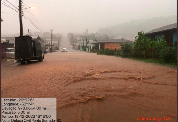 Em Ponte Serrada choveu 66 milímetros em uma hora