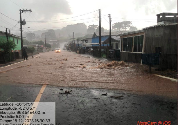 Última atualização: 2023/12/19 9:37:22Pelo menos seis cidades do Oeste de Santa Catarina sofreram estragos com chuvas intensas e ventos fortes. A mais afetada foi Ponte Serrada, onde em apenas uma hora choveu 66 milímetros, conforme a Defesa Civil regional de Xanxerê.