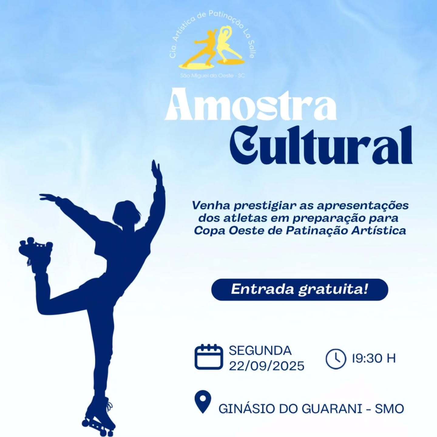 A Cia Artística de Patinação La Salle de São Miguel do Oeste será representada por 32 atletas, em várias categorias de solos, quarteto, grupo de show sênior e grupo de show master.