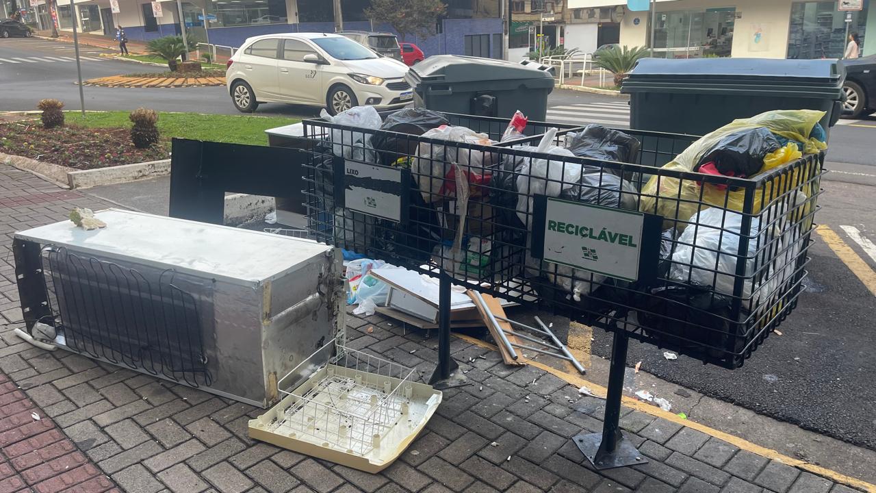 Além do descarte incorreto, o que mais chamou a atenção foi a presença de resíduos que não pertencem a nenhuma das categorias de coleta regular, como eletrodomésticos e outros materiais volumosos deixados ao lado das lixeiras públicas. O problema, segundo a Secretaria de Urbanismo, vai além da desorganização: representa uma infração passível de responsabilização.