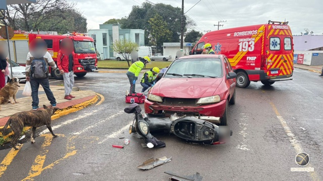 Última atualização: 2025/07/24 11:55:47Dois jovens ficaram feridos após uma colisão envolvendo um automóvel e uma motocicleta no centro de São Miguel do Oeste, por volta das 11h30 desta quinta-feira (24). O acidente foi registrado no cruzamento das ruas Elizabeth e Itaberaba.