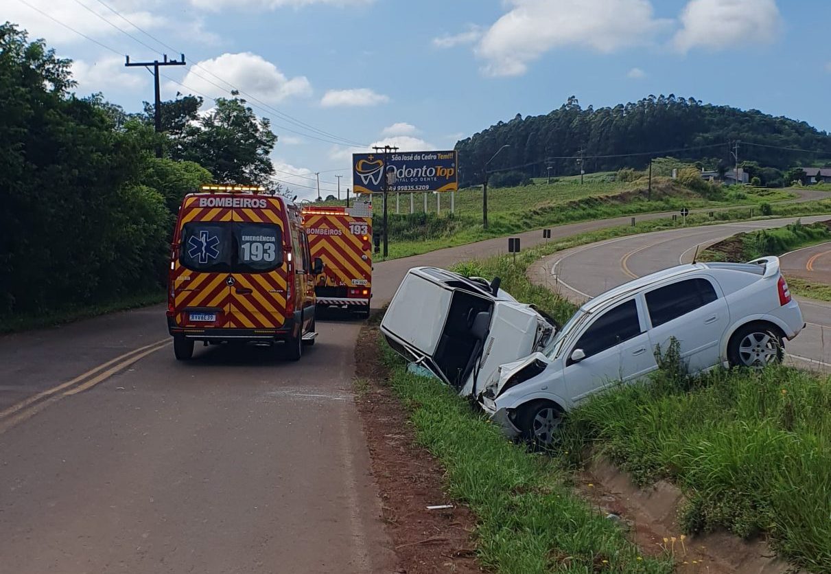 Acidente em Guarujá do Sul mobilizou Corpo de Bombeiros e resultou em três pessoas hospitalizadas