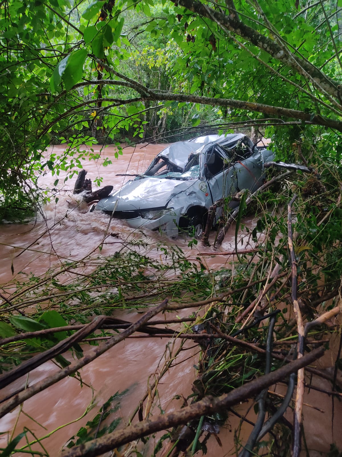 Por sorte, o motorista conseguiu sair da camionete antes que ela fosse levada pela correnteza. O veículo acabou preso entre árvores, a cerca de 400 metros do ponto onde inicialmente caiu no rio. Infelizmente, o veículo ficou completamente destruído e só poderá ser removido após o nível da água baixar.