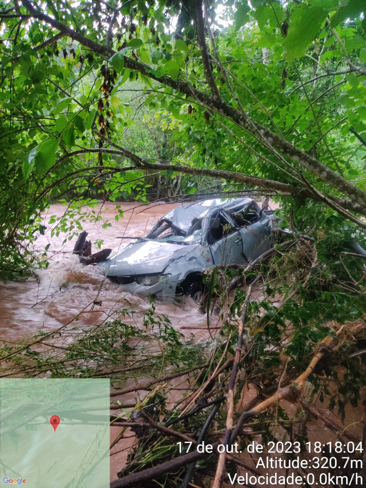 O Corpo de Bombeiros de Guaraciaba respondeu a uma ocorrência inusitada por volta das 17h40 desta terça-feira, 17, no município de Barra Bonita. O incidente envolveu um veículo arrastado pela enchente no interior da cidade. Segundo relatos dos bombeiros, ao chegarem ao local, especificamente na Linha Traíra, encontraram uma camionete L200 parcialmente submersa no rio. O proprietário do veículo explicou que tentou atravessar um riacho quando a estrada cedeu, arrastando o veículo para dentro do rio.