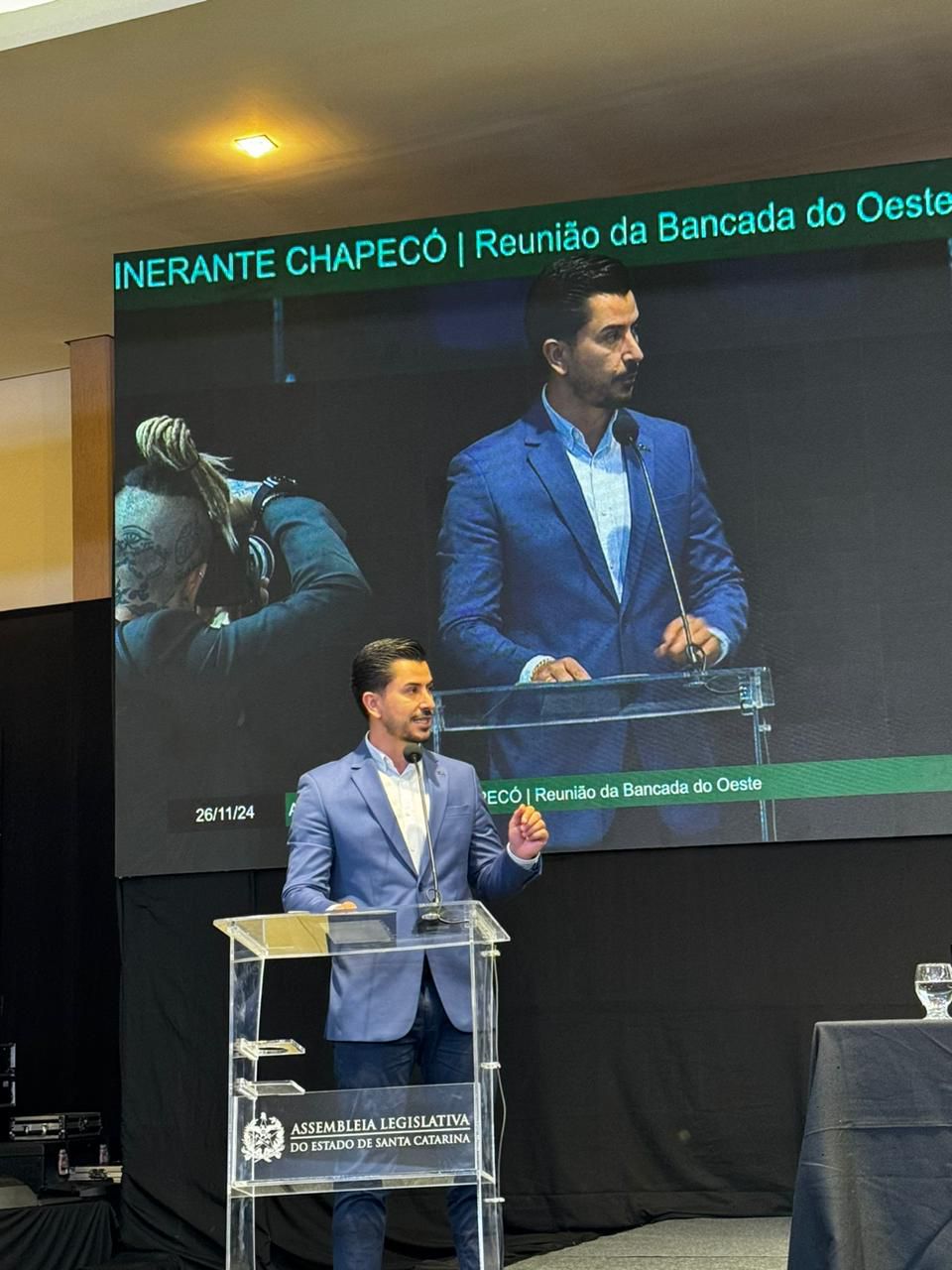 Na manhã desta terça-feira (26), durante a sessão da ALESC Itinerante em Chapecó, o presidente do Conselho das Entidades Empresariais do Extremo Oeste, Juares dos Santos Junior, representando 17 entidades e os interesses de uma região que abriga 175 mil habitantes, destacou pautas essenciais para o desenvolvimento socioeconômico regional