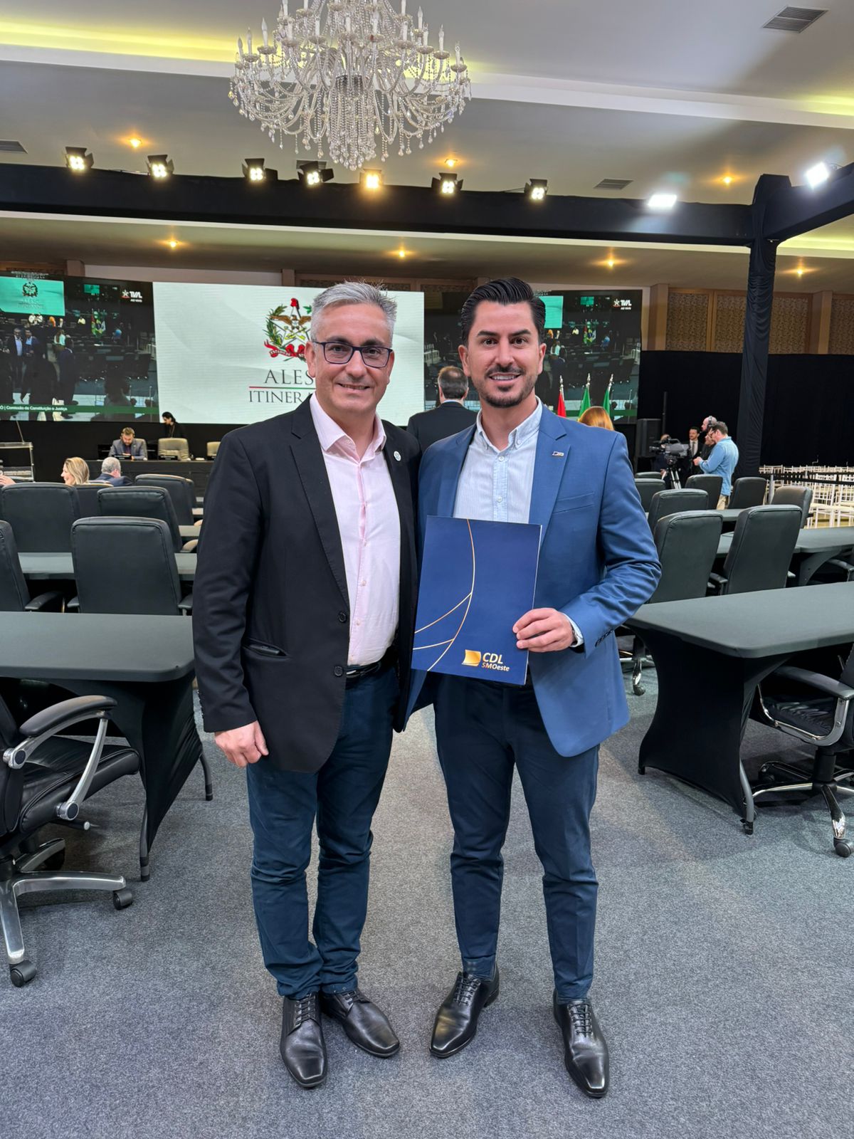 Acompanhando o presidente do Conselho das Entidades Empresariais estava o presidente do Sindicont Rudinei Almeida dos Santos, que presidirá o conselho em 2025.