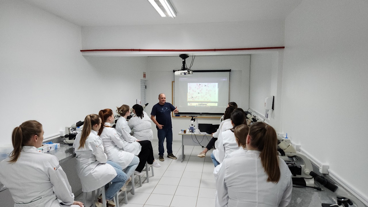 “Consegui entender melhor como funcionam os exames, a rotina hospitalar e cirúrgica, além dos exames pré-operatórios e sua relação com o dia a dia do laboratório. As oficinas também foram muito importantes, especialmente a de interpretação de lâminas. Para mim, que vou iniciar o estágio no próximo ano, isso foi essencial para aprimorar a compreensão e a capacidade de identificar alterações nas amostras.”