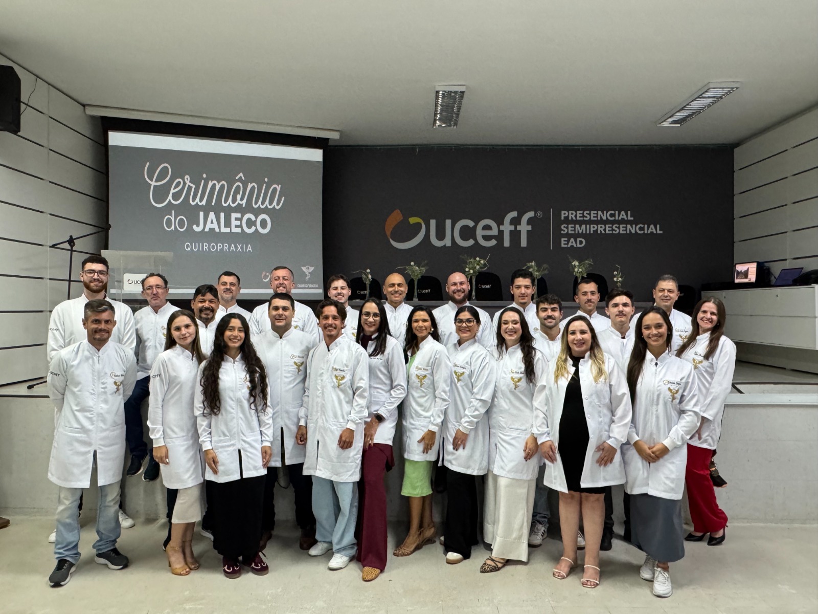 Última atualização: 2026/04/24 5:22:55Na noite da última sexta-feira (17), ocorreu no auditório da unidade da UCEFF no Santa Maria a cerimônia de entrega dos jalecos dos alunos do curso de Quiropraxia da UCEFF Chapecó.