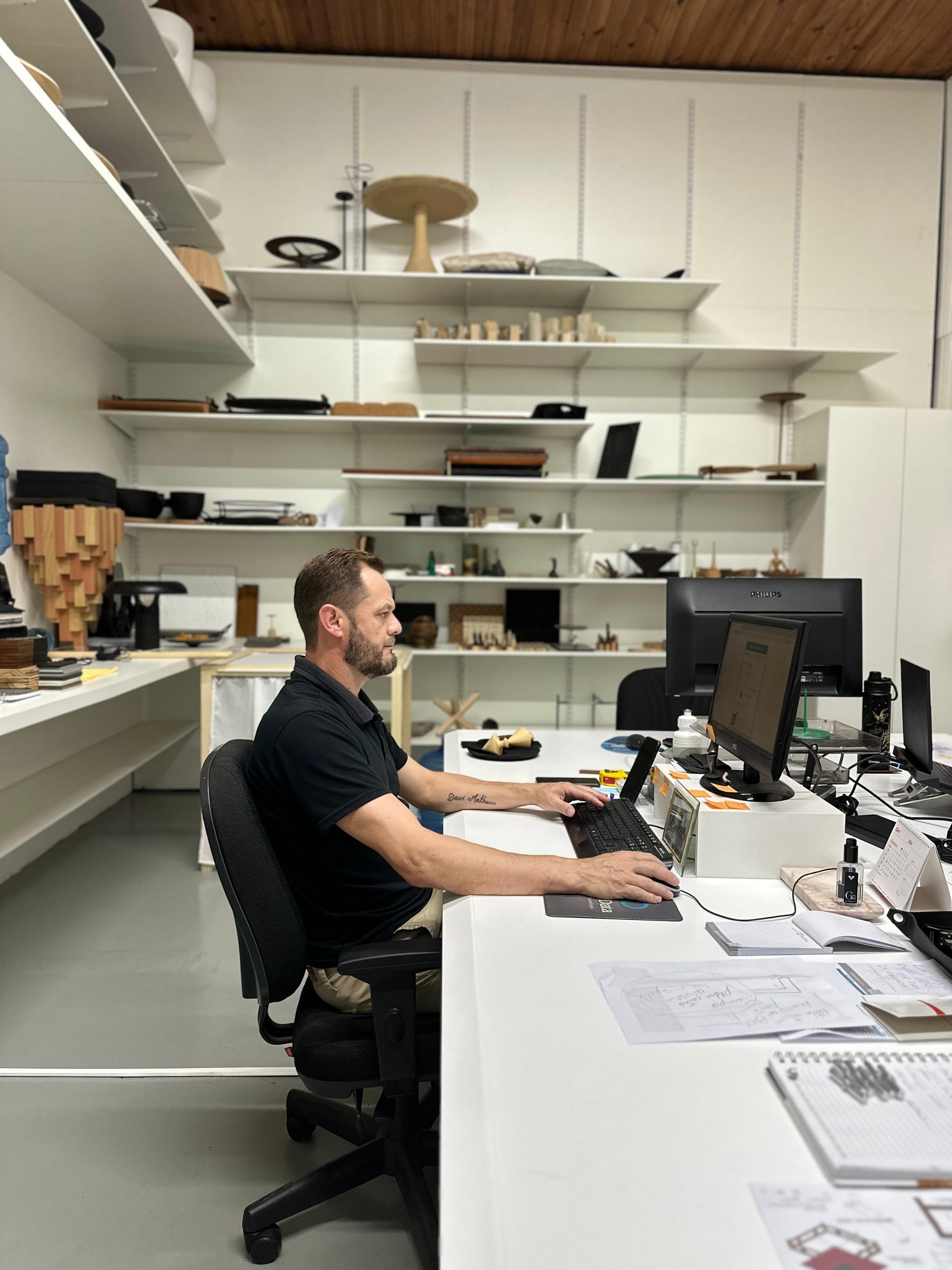 Com o tempo, sua responsabilidade aumentou ainda mais, e ele foi designado para liderar o departamento de produtos. Hoje, Elton gerencia uma equipe responsável pela prototipagem e pesquisa, em colaboração com engenheiros de produtos e o renomado designer catarinense Jader Almeida. “Jader desafia nossa equipe com uma dinâmica muito acelerada, o que nos coloca na vanguarda das tendências do setor moveleiro”, destaca Elton.
