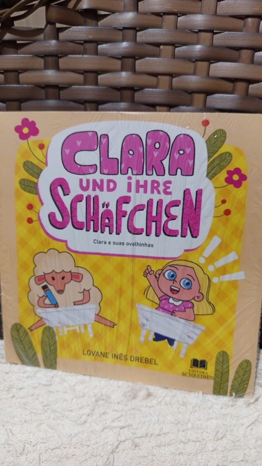 R: Foi uma inspiração, um sonho! Eu gosto muito de livros e sentir o livro físico na mão, é mais contemplativo do que ler ele digitalmente. Você pode sentir ele na sua mão, sentir o carinho e a dedicação de quem se animou a criá-lo. É empolgante, mas também desafiador. Me propus a escrever um livrinho em alemão, com dedicação exclusiva para minha sobrinha e afilhada que se chama Clara. Hoje ela tem quase seis anos. Quando me propus a escrevê-lo ela estava com três anos. E o fiz com a ideia de um dia, ela poder ler o livrinho que a madrinha escreveu exclusivamente a ela! É uma linda história, simples, mas com uma certa autenticidade, uma história real do que esta Clara vivia aos três anos de idade. Como professora de alemão, também o escrevi com o intuito de meus alunos poderem ler a língua alemã em um livro infantil em alemão e português simultâneo, para facilitar a compreensão. Assim aconteceu, a história da menina se tornou realidade, em um livro infantil escrito em alemão e português, para inspiração de tantas crianças que podem ler e aprender a ler com historinhas criadas, a partir de uma menina que visitava “suas ovelhinhas”. Na história verídica, estas ovelhinhas eram de um potreiro na vizinhança, onde mora a vovó paterna da Clara. Então em muitas ocasiões eu, madrinha, levava a Clara até estas ovelhinhas. E com toda esta situação, encantamento e magia infantil, me inspirei e escrevi esta linda historinha. A qual é muito bela e contagiante