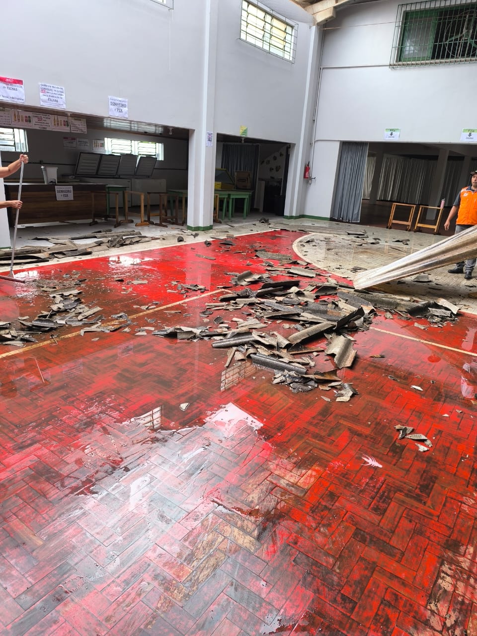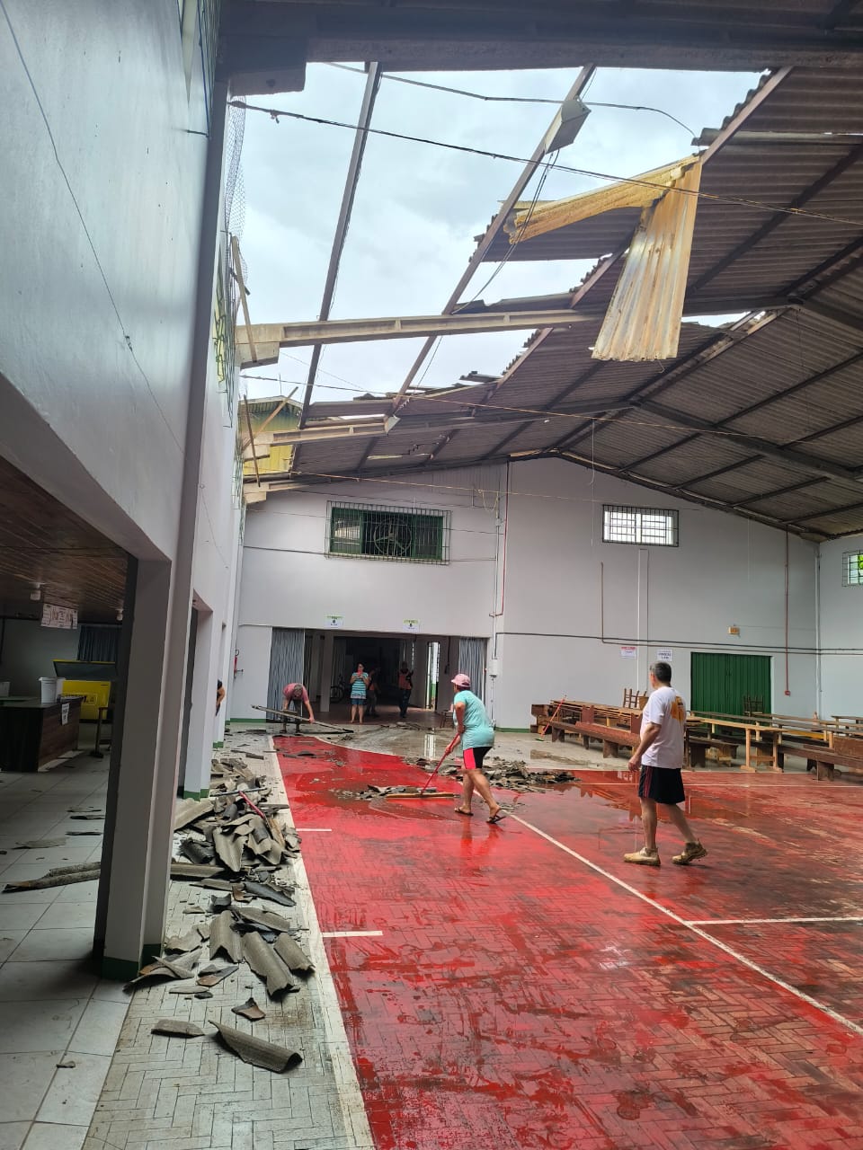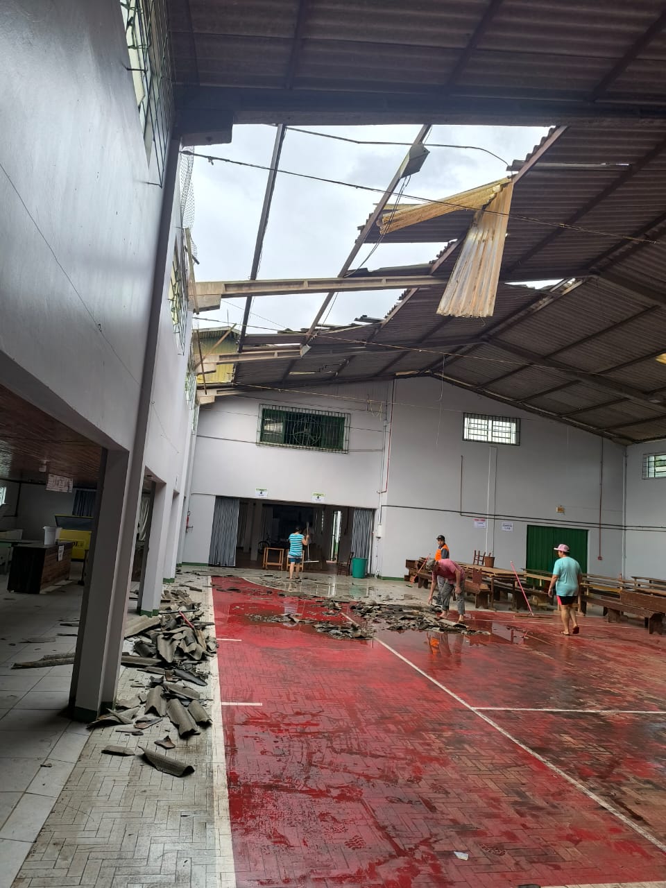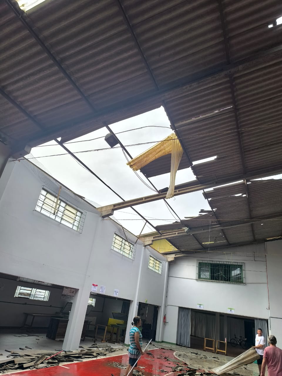 Última atualização: 2025/03/26 10:21:48Na tarde desta terça-feira (25), por volta das 14h30, a Defesa Civil Municipal de São Miguel do Oeste atendeu ocorrências de destelhamento em duas residências e no ginásio comunitário do bairro Salete. O incidente foi causado pelos fortes ventos registrados na região.